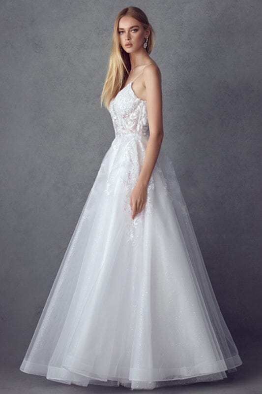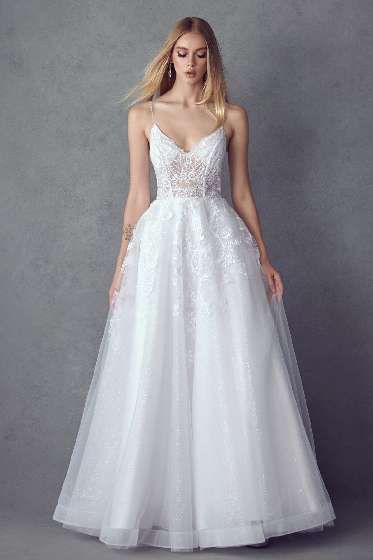 Receive lots of compliments in this embroidered long sleeveless wedding dress with an A-line skirt by Juliet JT2482SW.