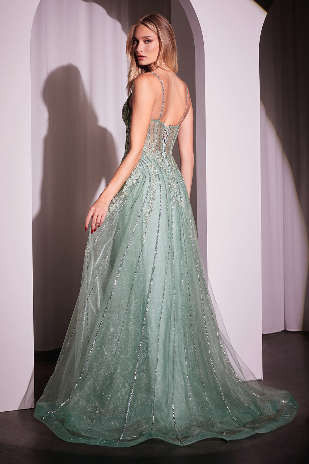 Satin Sleeveless Corset A-line Slit Gown by Ladivine CD337