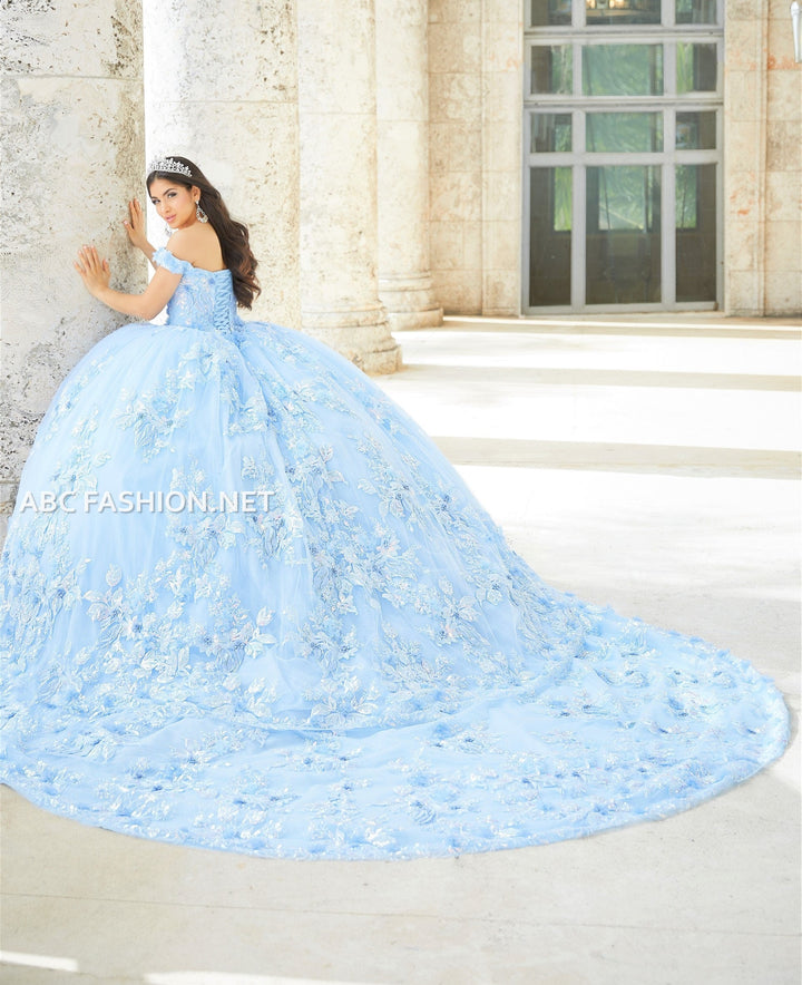 Be the center of attention in this long off shoulder dress with A-line 3D floral glitter tulle ball gown skirt. Make a statement modern lace and tulle ball gown. An exquisite off shoulder V-neck ball gown is made extra special with sparkling floral sequins and embroidered appliques along the bodice. The full ball gown skirt is accented with large lace appliques. Features a lace-up back and a gorgeous detachable double lace royal train.