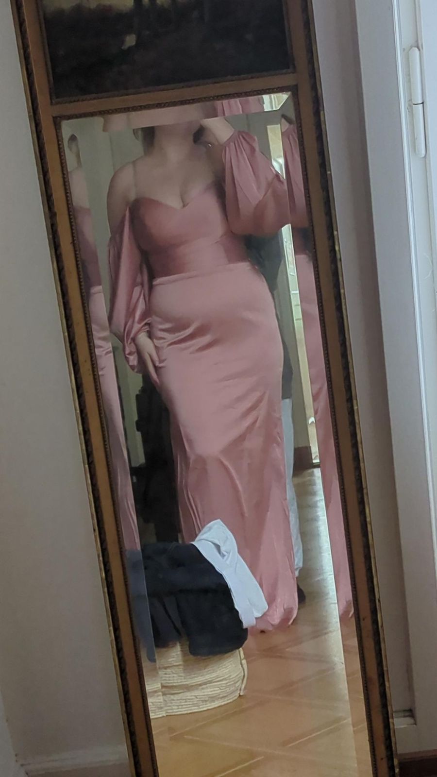 - Long Sleeve Off or On the Shoulder Soft Satin Dress (No Stretch)