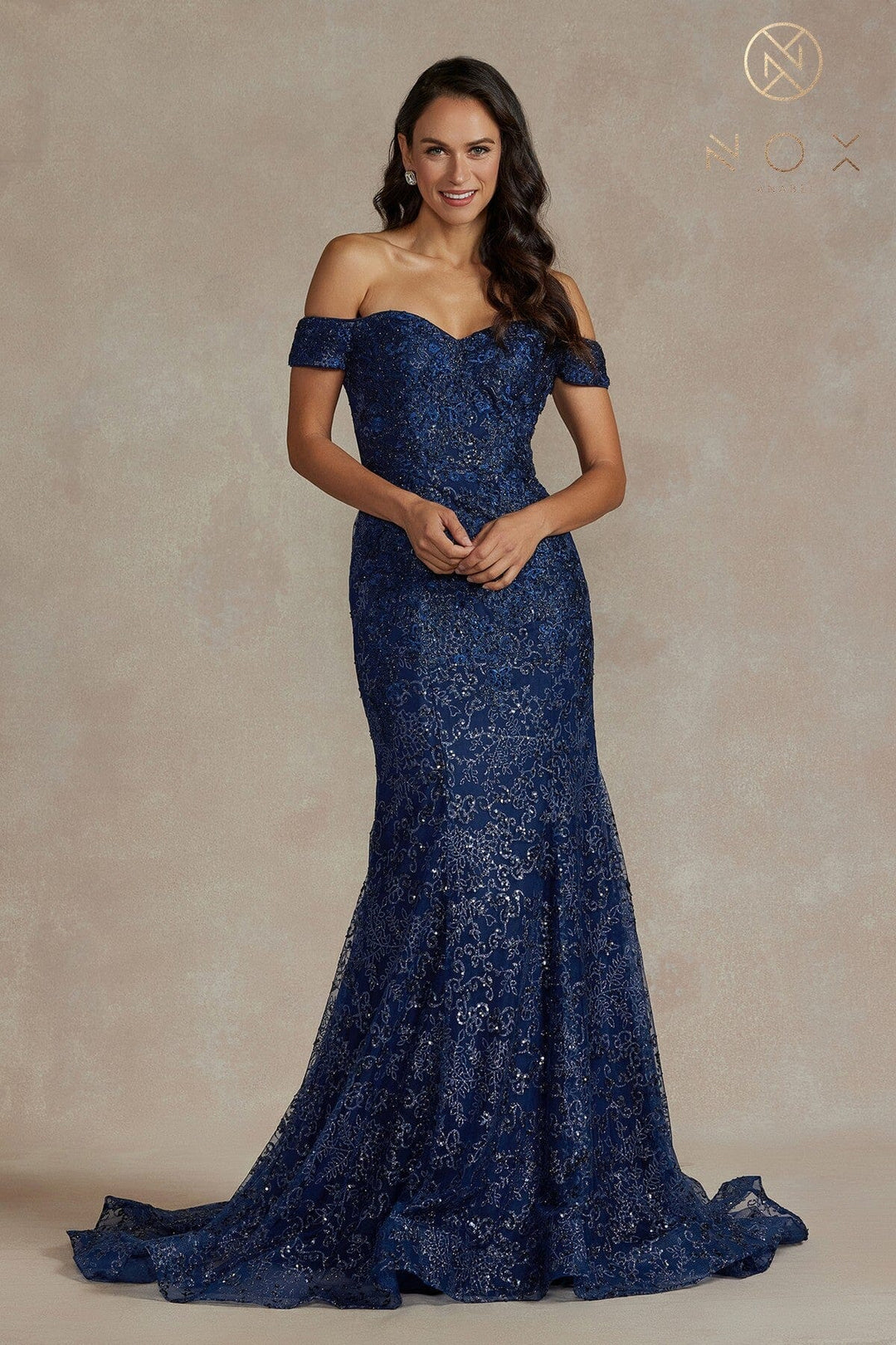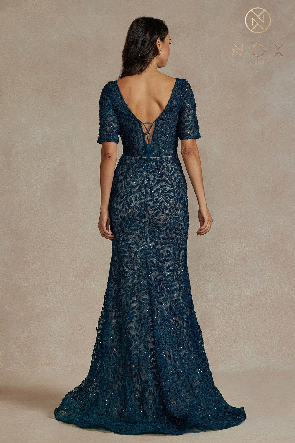 Jersey Fitted V-Neck Gown by Jessica Angel 835