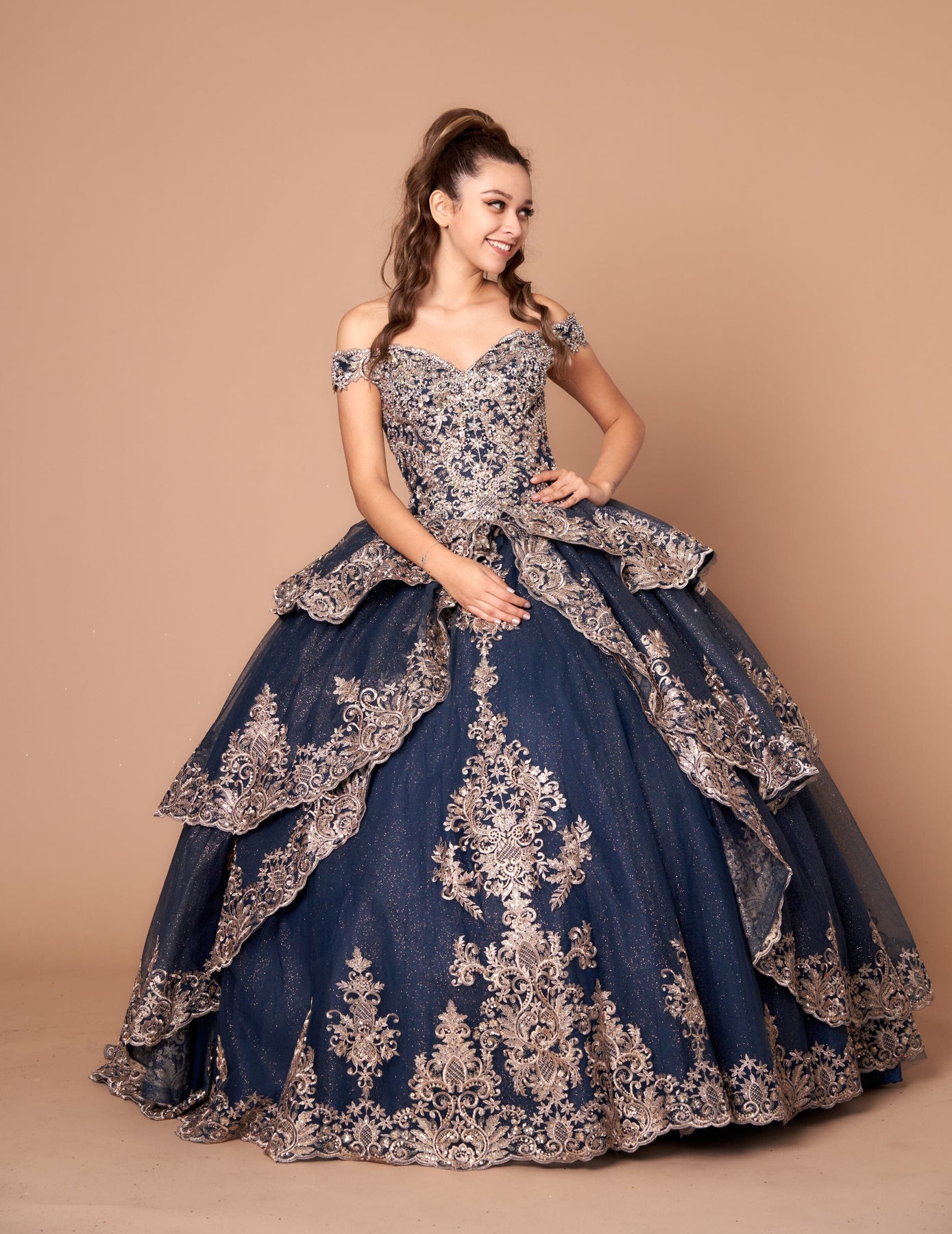 - Applique Off Shoulder Layered Ball Gown by Calla WB20525