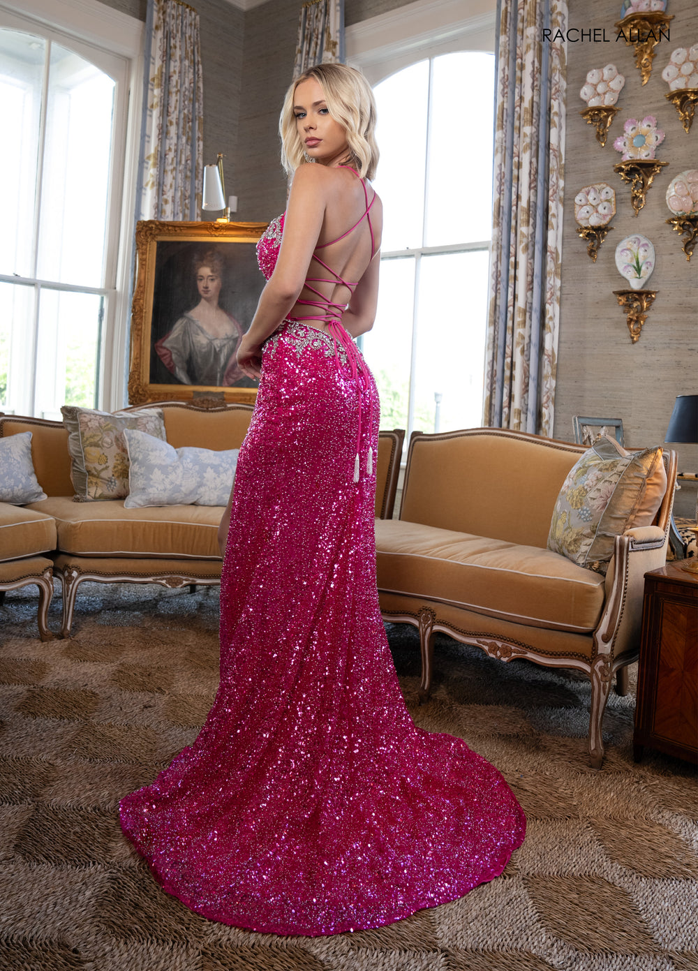 Sequin Strappy Back Slit Gown by Rachel Allan 70962