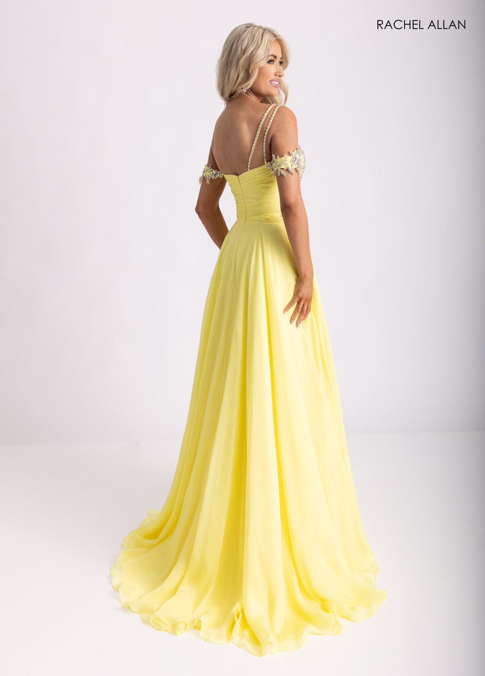 Beaded Strappy Back Slit Gown by Rachel Allan 70970