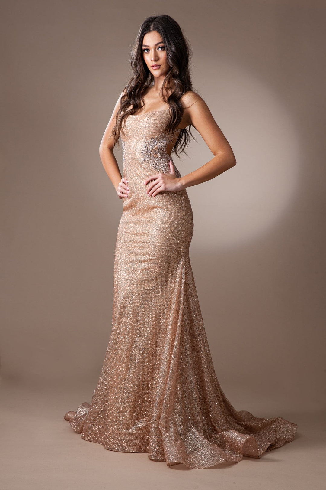 • Sleeveless Metallic Glitter Mermaid Dress by Amelia Couture TM1014