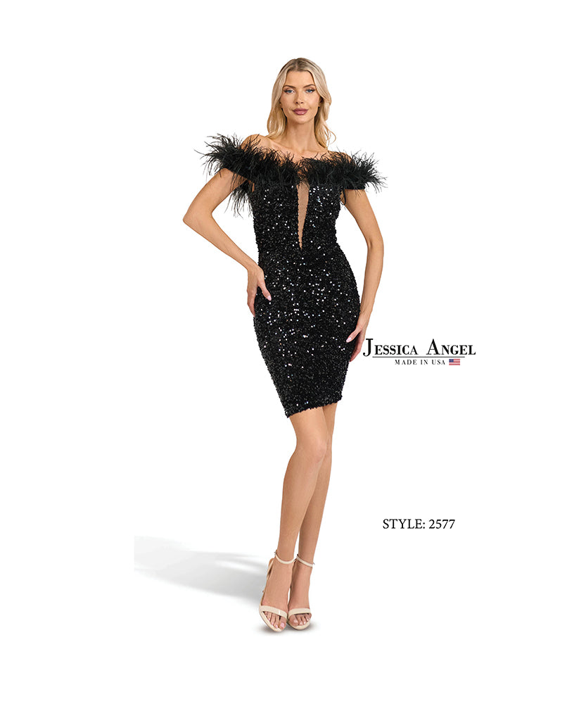 Velvet Sequin Short V-Neck Dress by Jessica Angel 2533