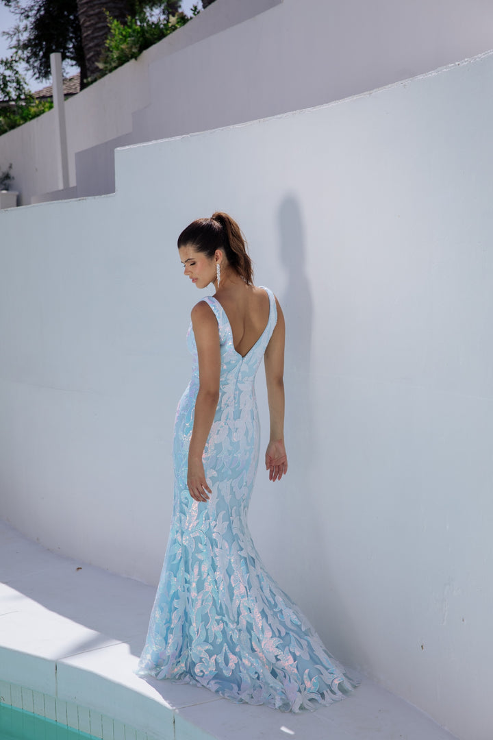 - Sequin Print Fitted V-Neck Gown by Eureka EK101
