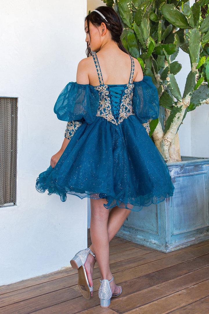 - Girls Applique Short Puff Sleeve Dress by Cinderella Couture 5113