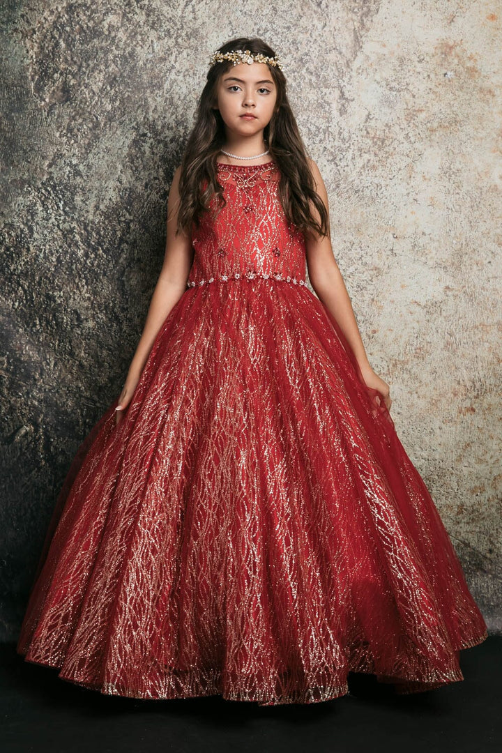 - Girls Beaded Sleeveless Glitter Gown by Petite Adele C334