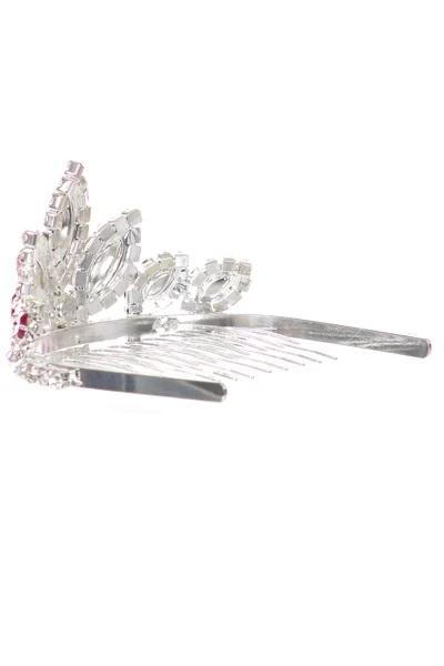 Your sweet girl will love to accessorize her outfit with this beautiful fuchsia stone mini silver tiara. The attached comb will securely hold this crown in place.