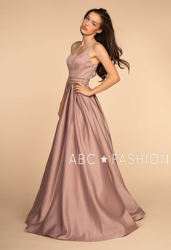 Turn heads in this sleeveless satin gown with sheer embroidered back by Elizabeth K GL2531. This long evening dress features a sleeveless scoop neck bodice with pleated details, beaded waistbands for a touch of sparkle, the sheer back is adorned with lovely floral embroidery, a floor length A-line skirt, and a zipper closure.
