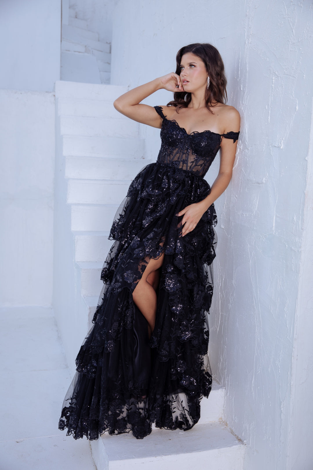 • Off Shoulder A-line Tiered Gown by Eureka EK102