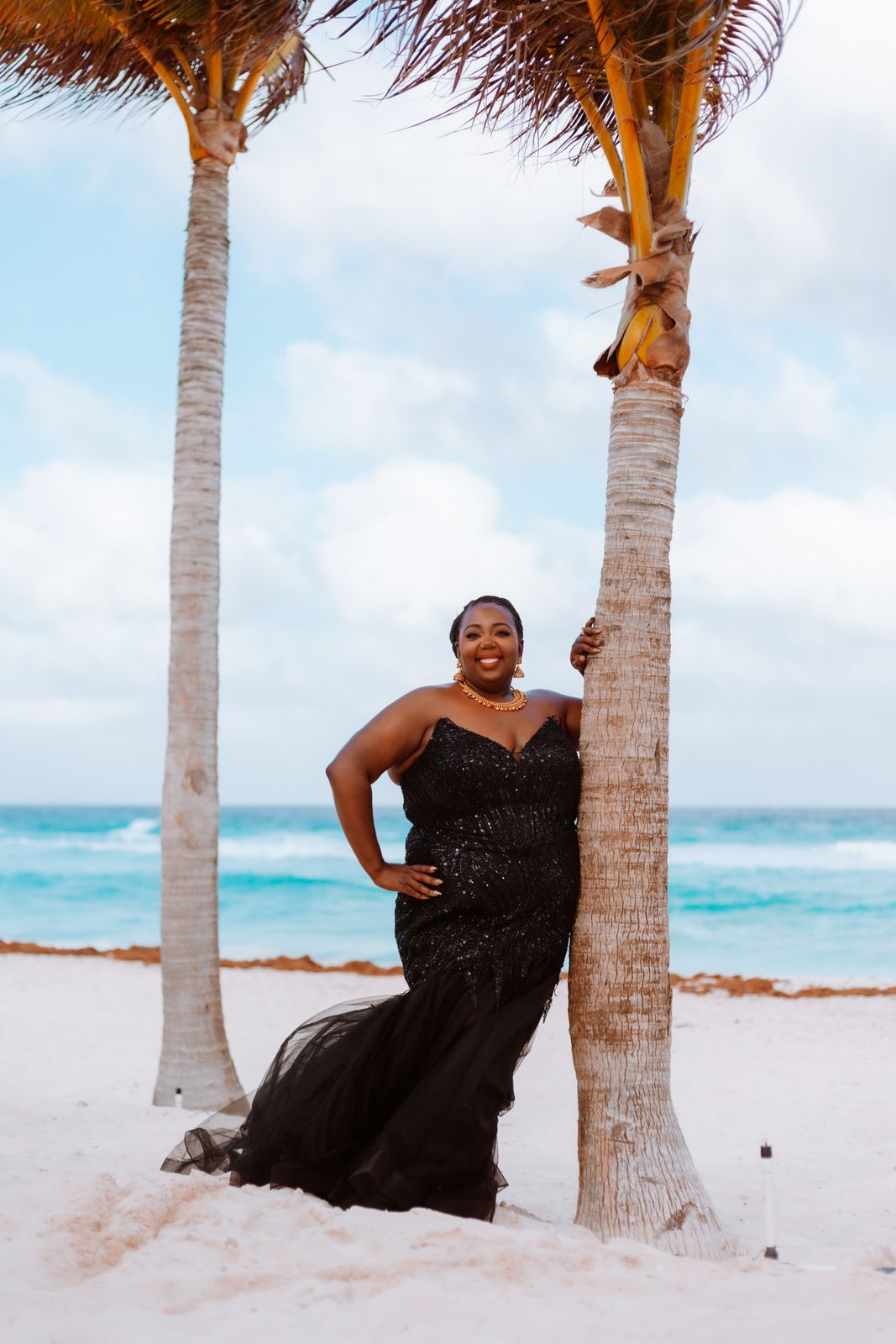 I love, love, love this gown! I normally don’t wear black clothing but this dress offers sexy + a touch of class. It ran a bit large. Make sure to check with your tailor to see if they can alter before purchasing. Mine wouldn’t alter due to the amount of beading.