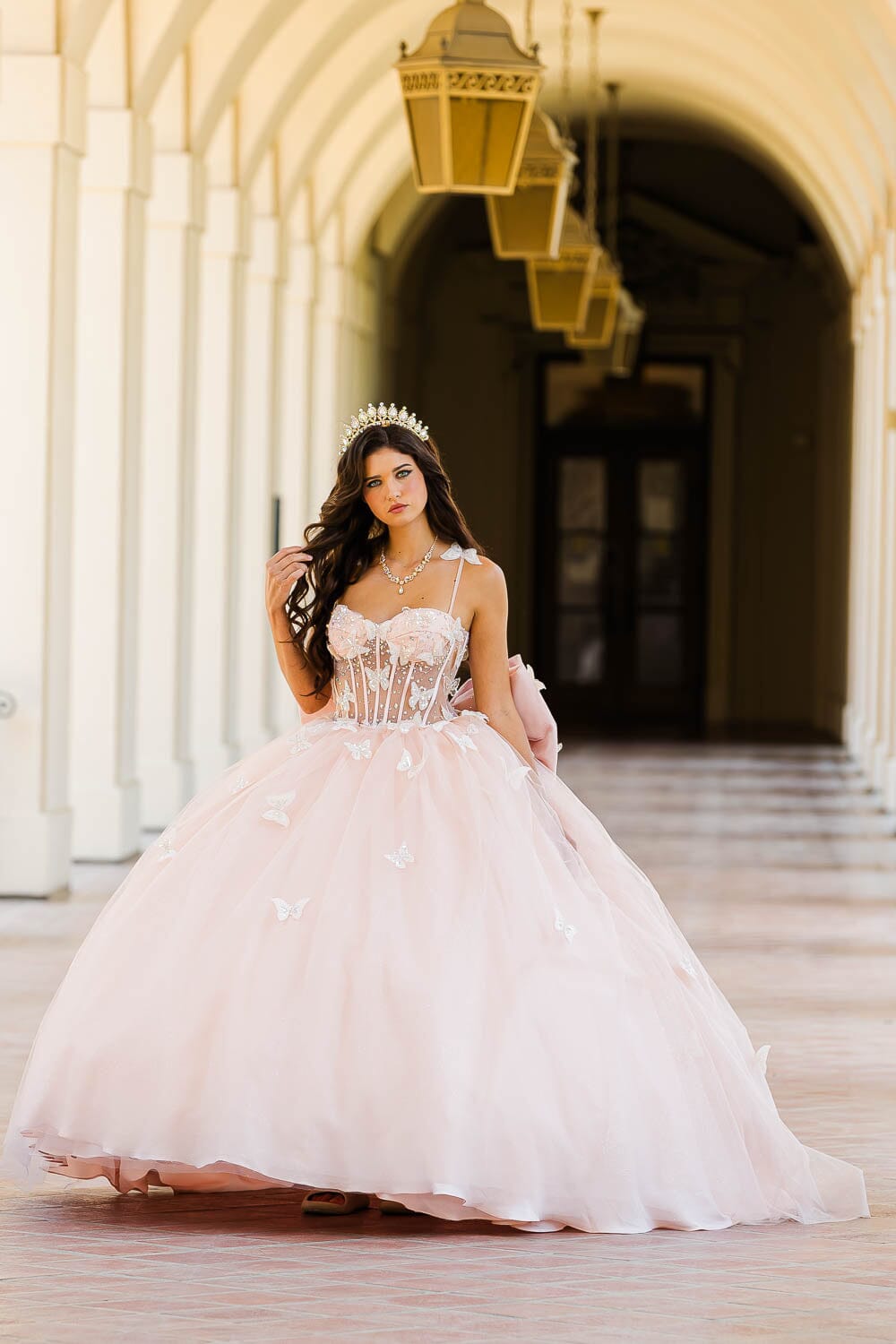 - 3D Butterfly Sheer Corset Ball Gown by Petite Adele PQ1032