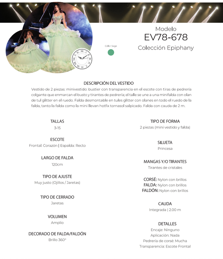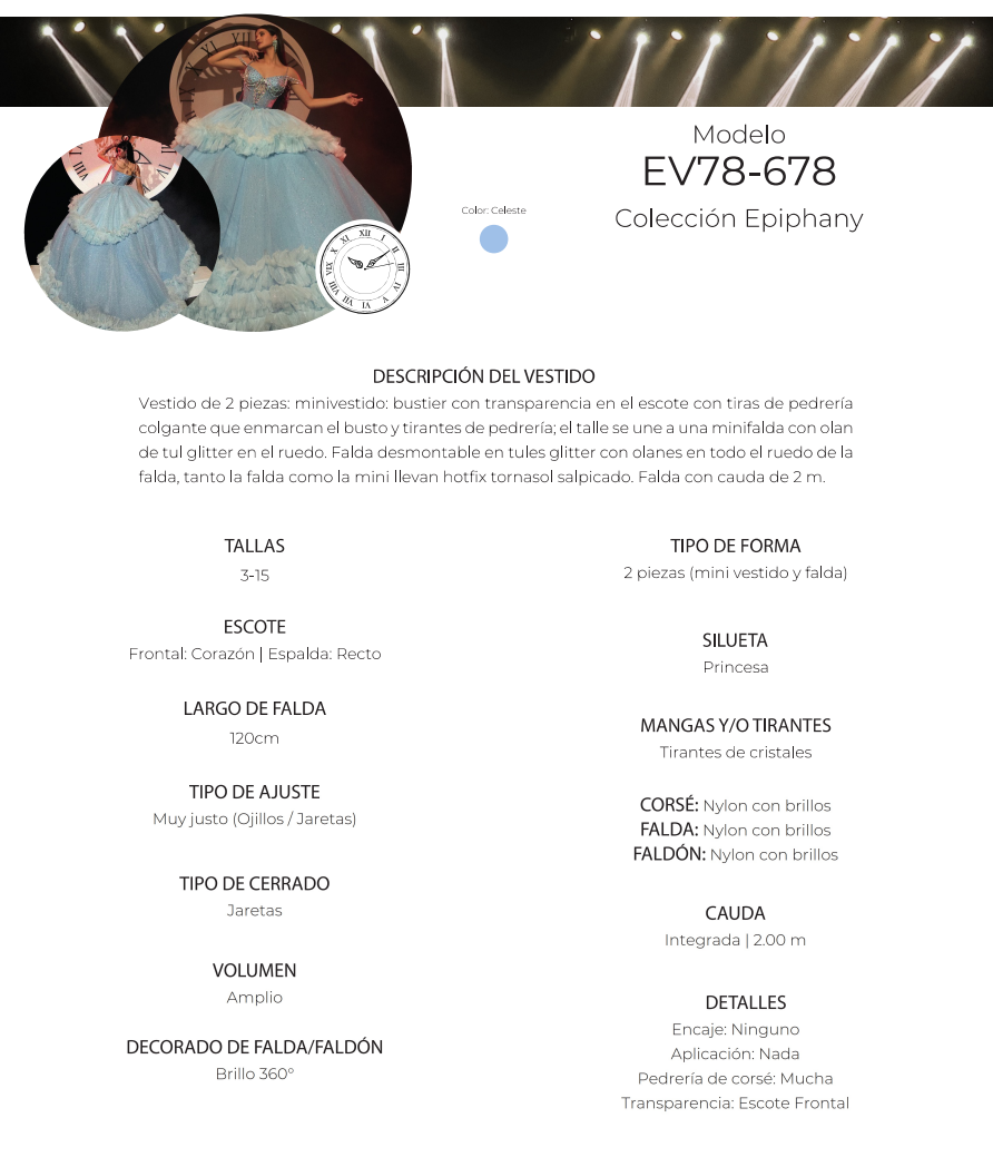 - Occasions: Quinceañera, Sweet 16, Prom, Red Carpet, Gala, Debutante Ball, Evening Wear, Sweet 15, Wedding, Quince