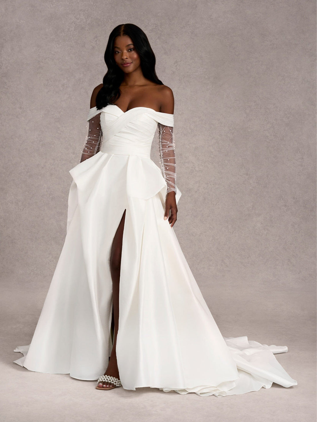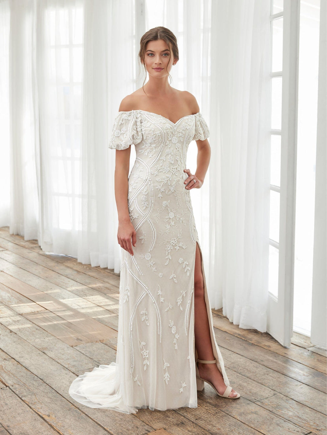 Captivate the room in our collection of affordable ivory wedding dresses. From timeless designs to trendy details, you are sure to look unforgettable in our selection of bridal gowns.