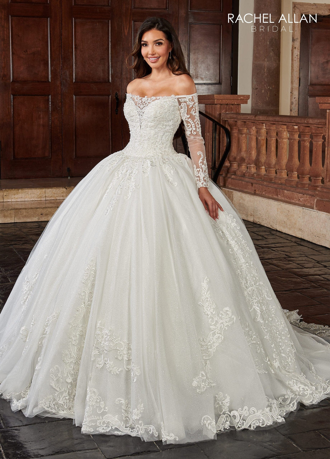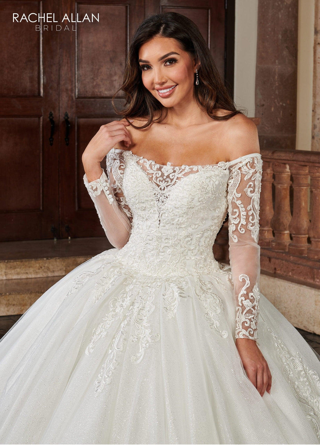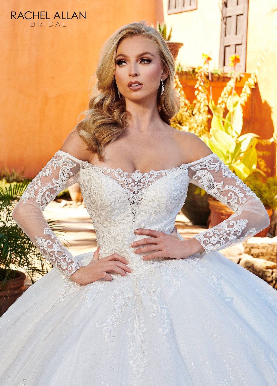 Off Shoulder Long Sleeve Bridal Gown by Rachel Allan RB6112