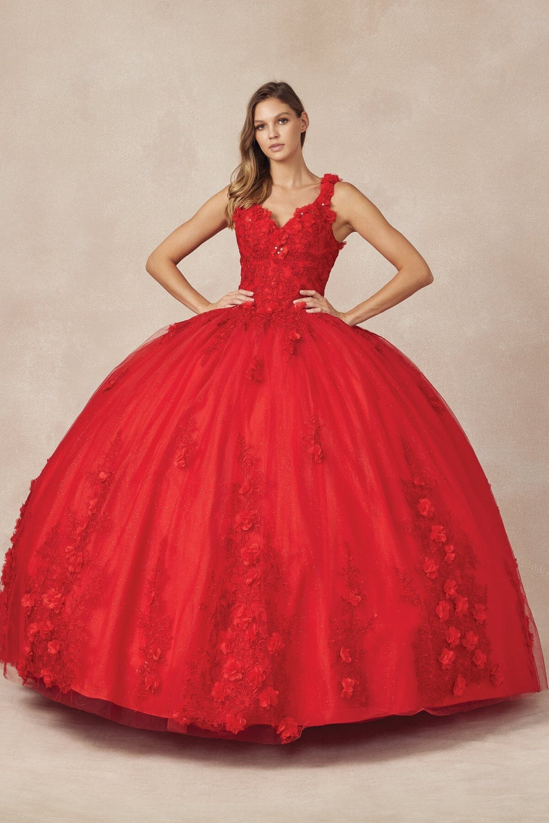 - 3D Floral Sleeveless Ball Gown by Juliet 1437