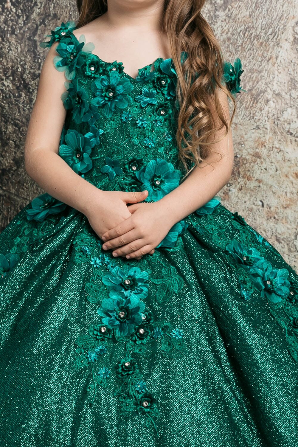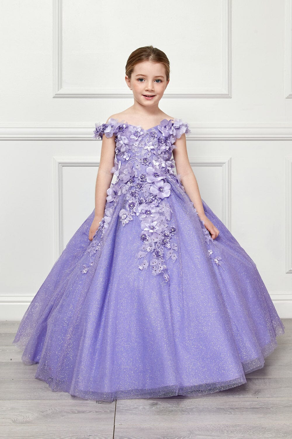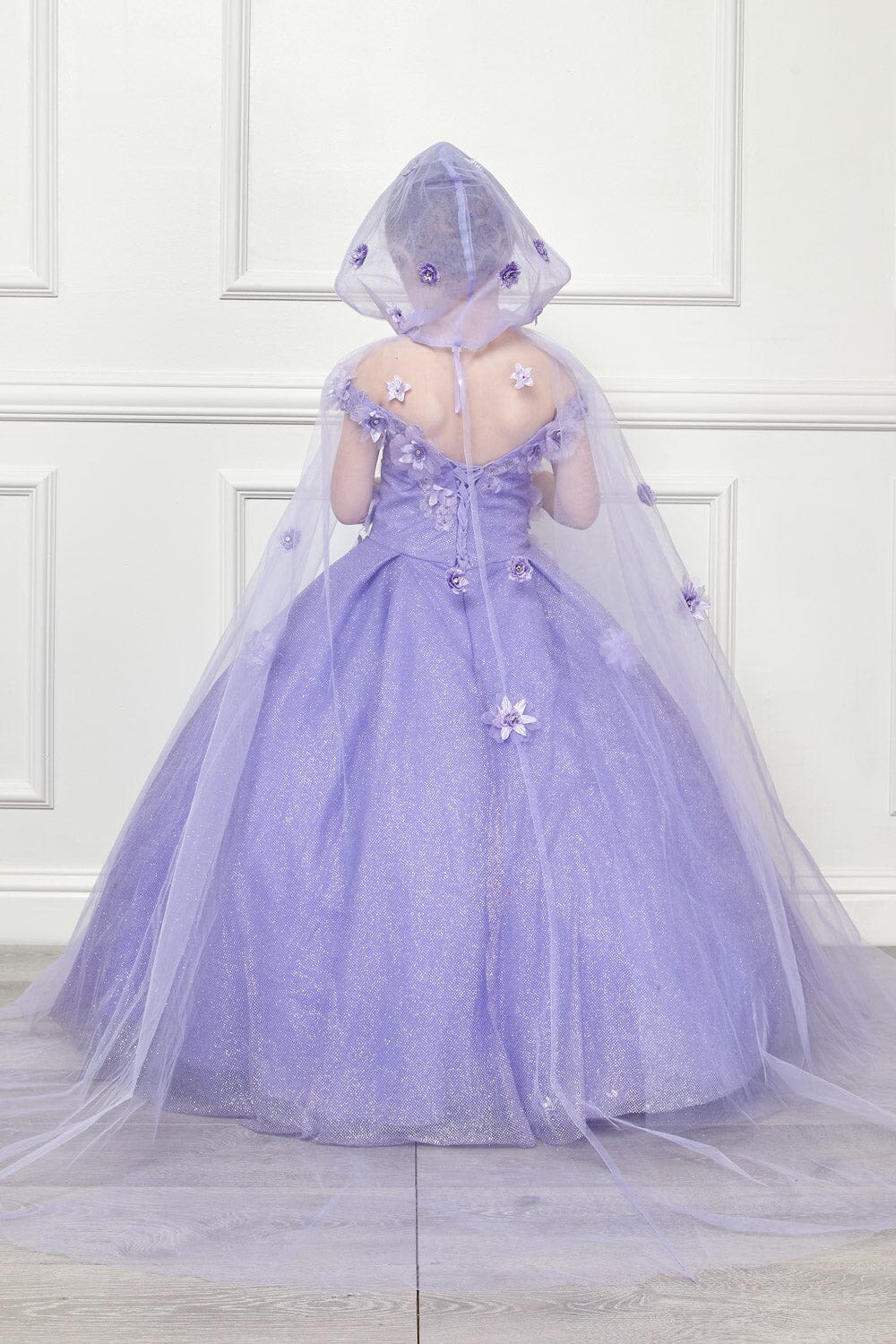 - Girls 3D Floral Glitter Cloak Ball Gown by Petite Adele PK1002