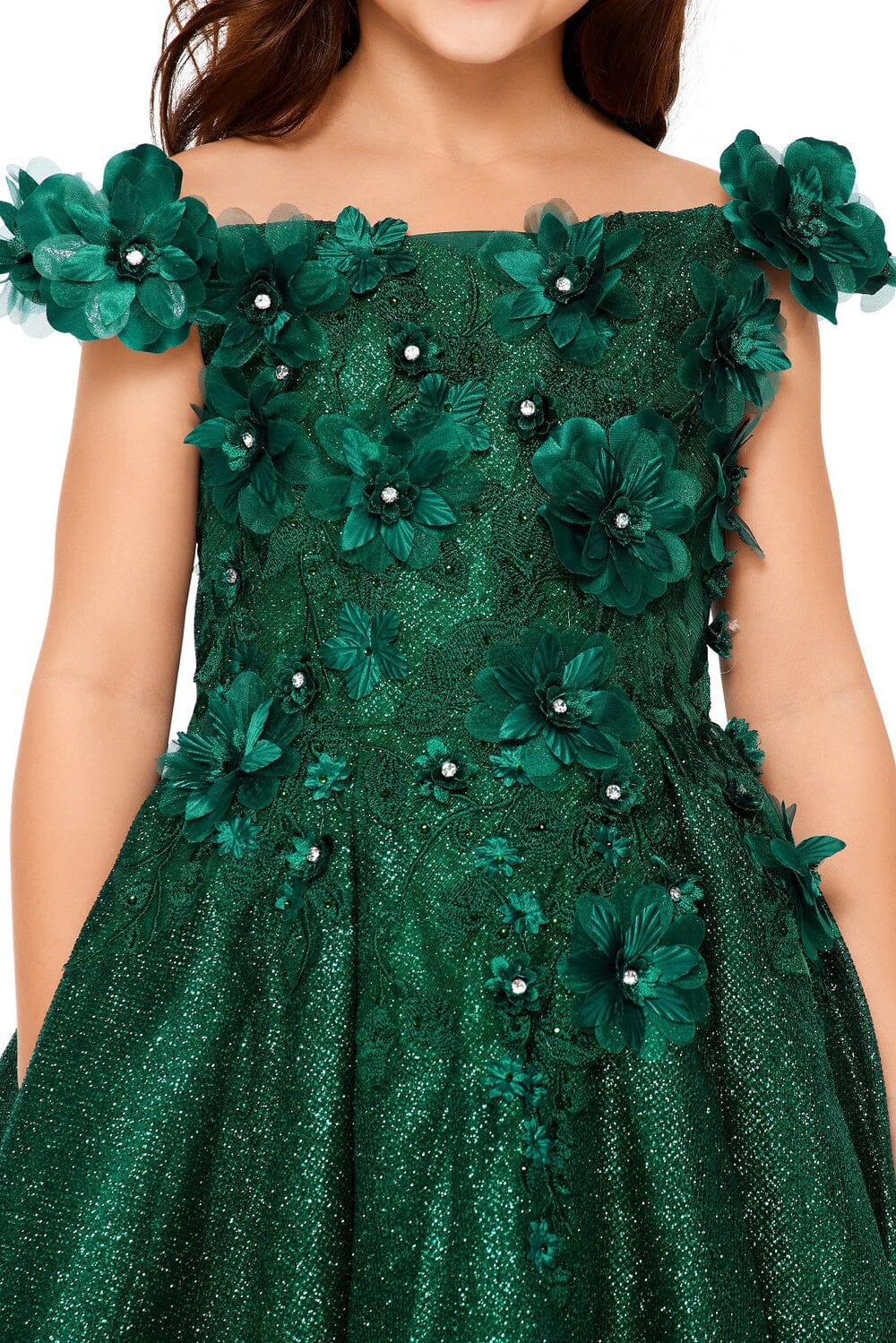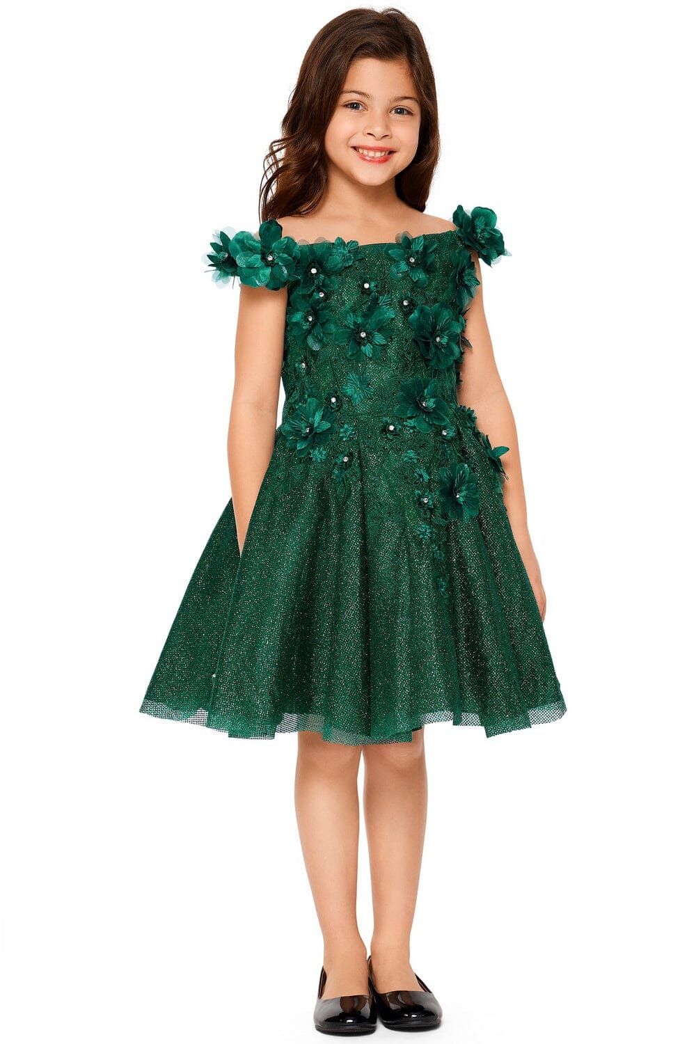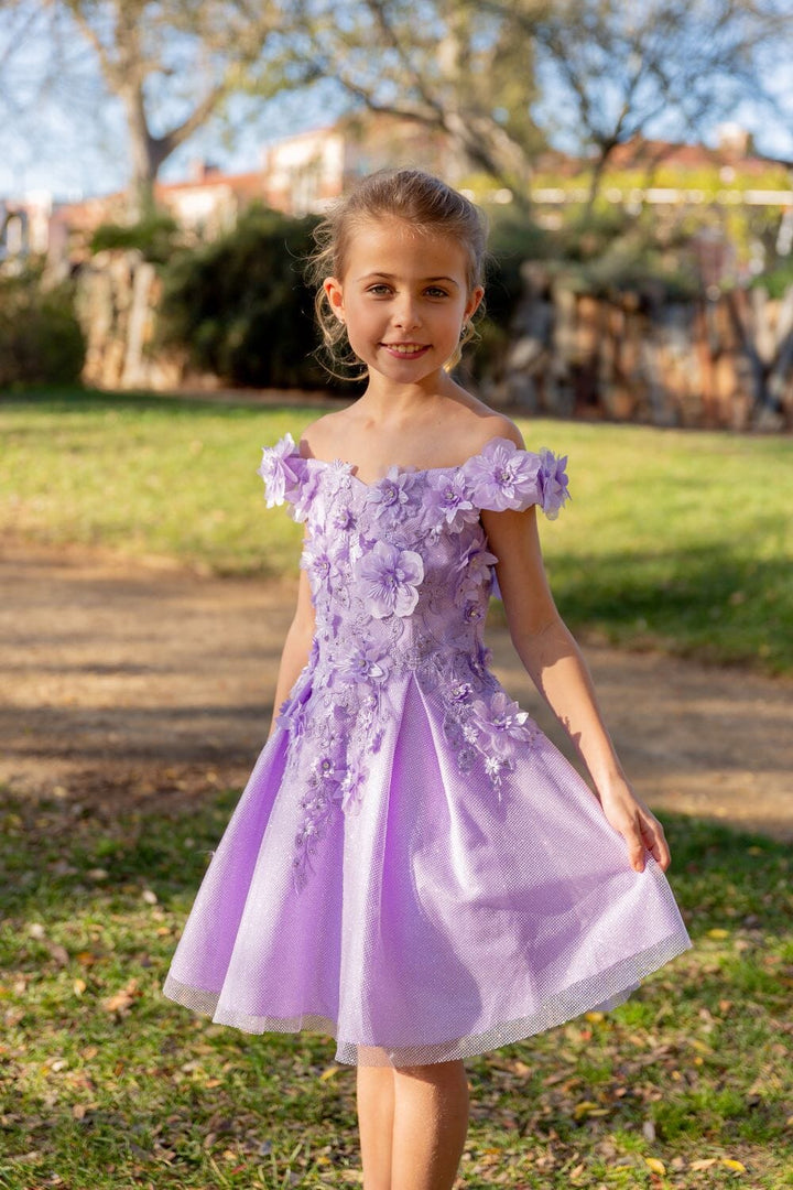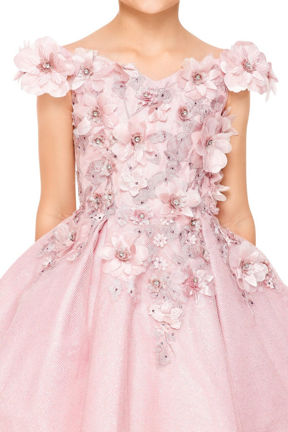 - Girls 3D Floral Short Off Shoulder Dress by Cinderella Couture 5120
