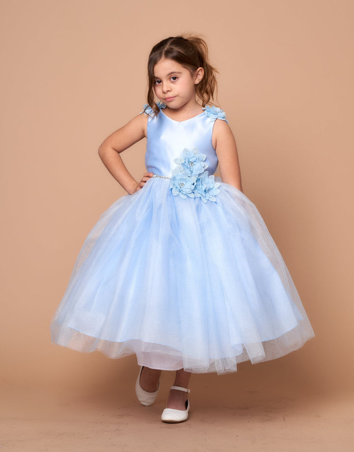 - Girls 3D Floral Sleeveless Tea Length Dress by Calla D802