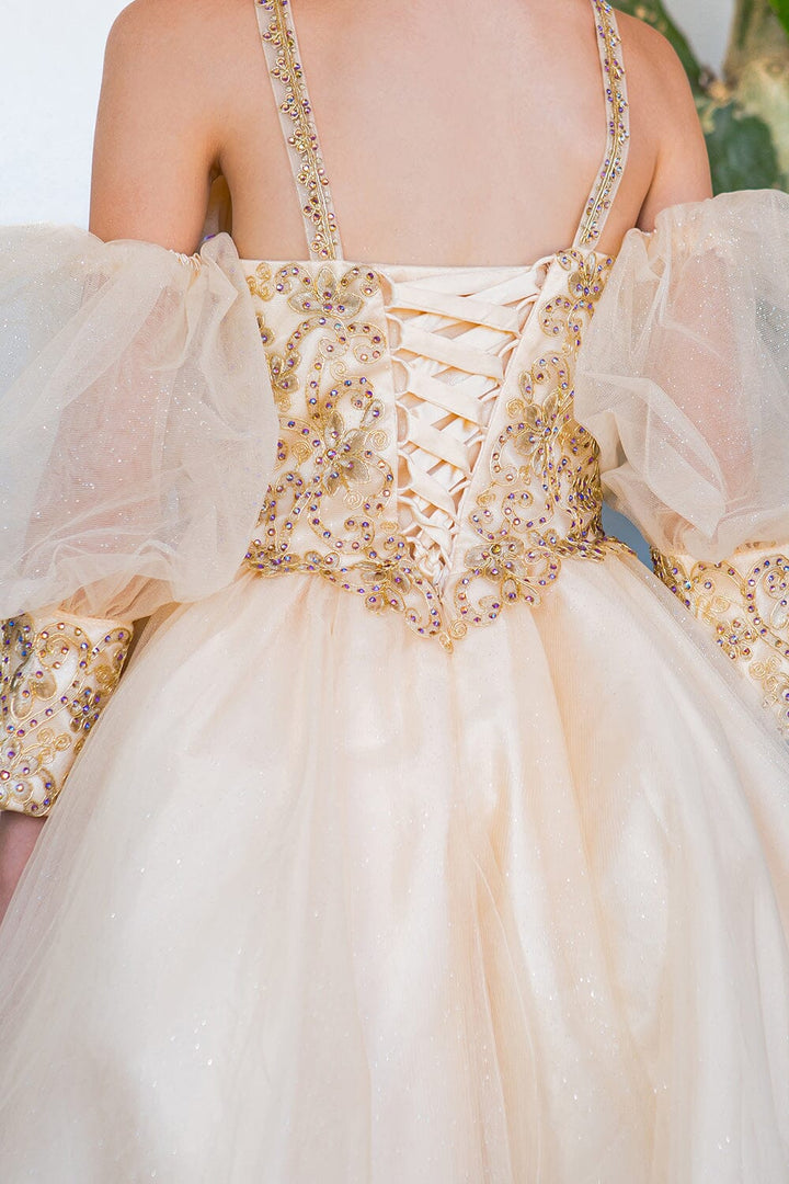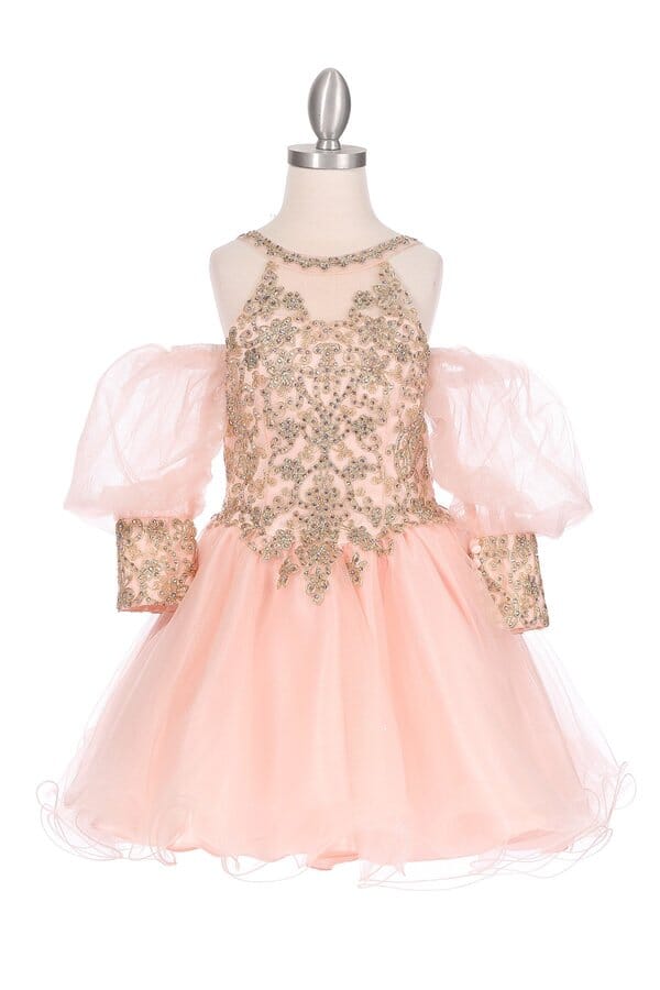 - Girls Applique Short Puff Sleeve Dress by Cinderella Couture 5113
