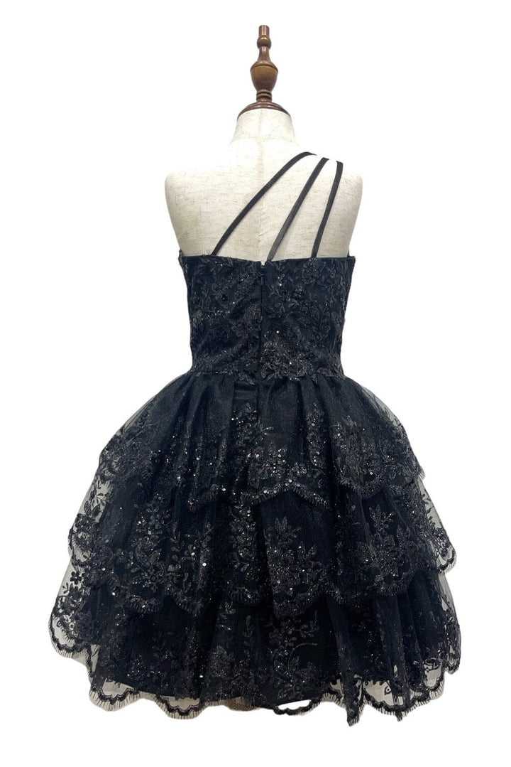 - Girls Short One Shoulder Tiered Dress by Cinderella Couture 5132