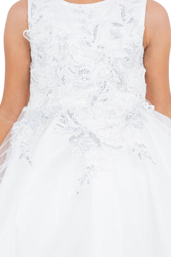 Your sweet girl will look like a fairy-tale Princess in this butterfly applique short sleeveless dress with A-line skirt by Cinderella Couture 9150.