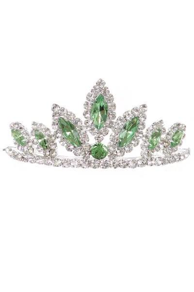 Girls Green Stone Mini Silver Tiara with Comb