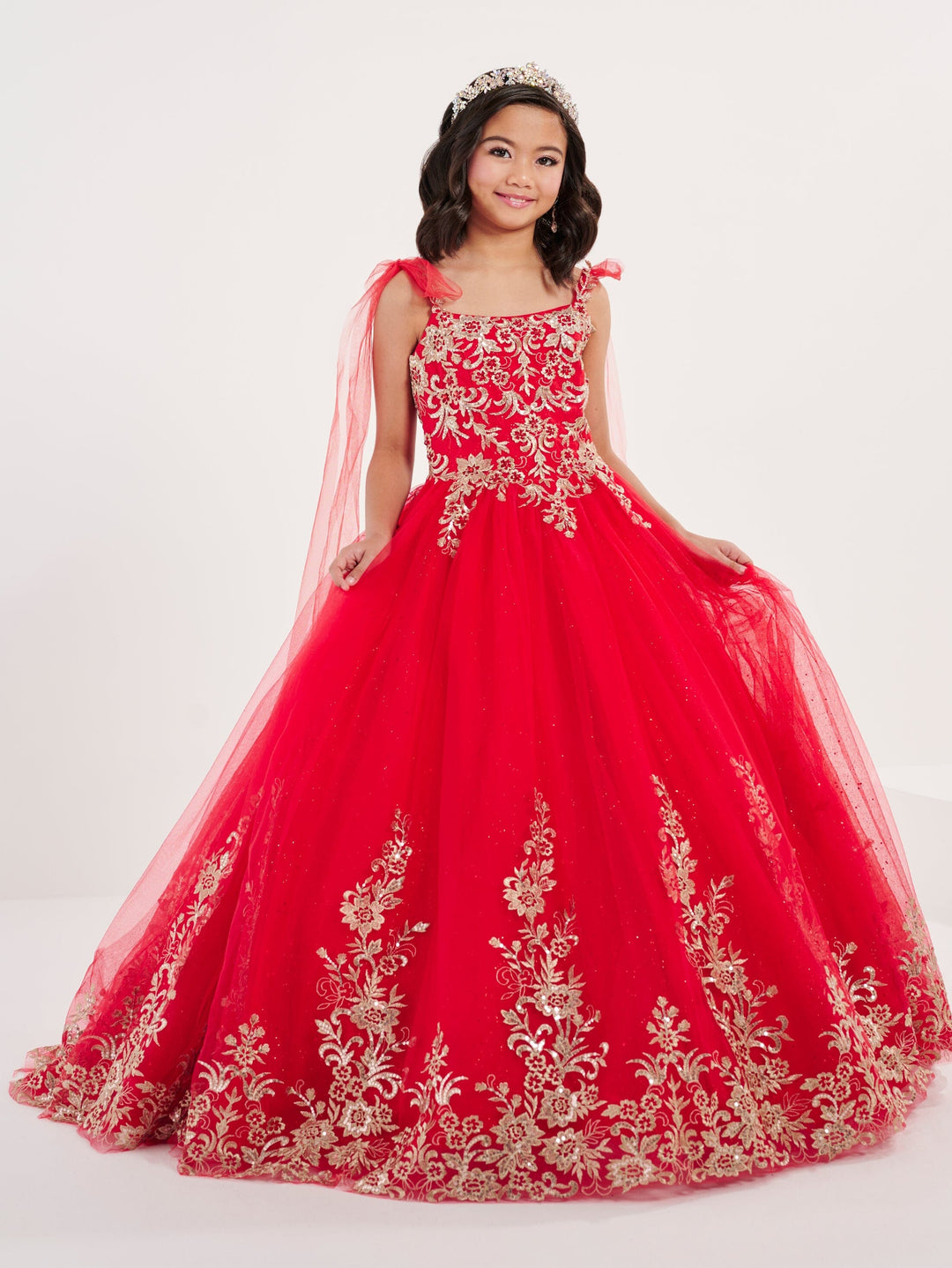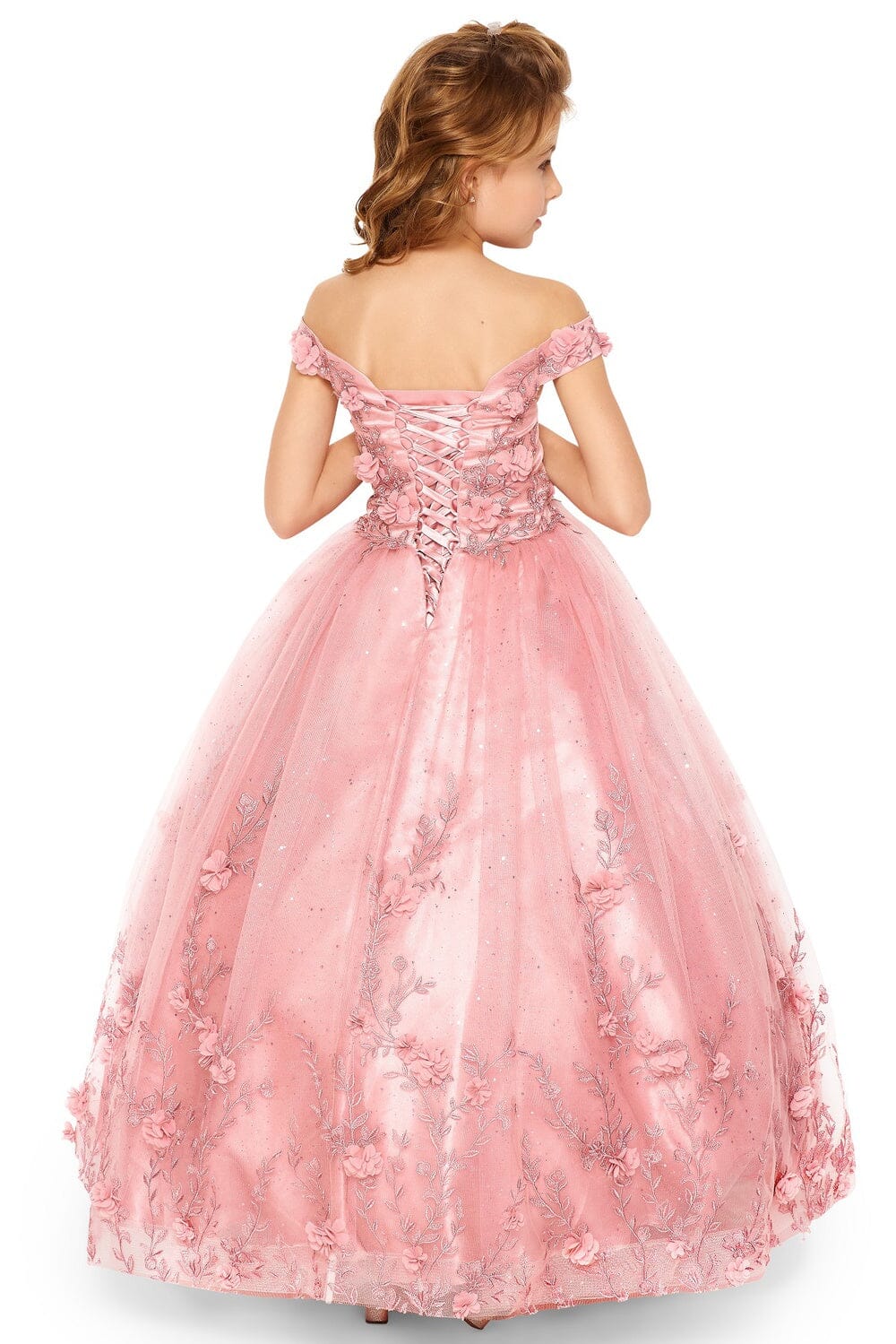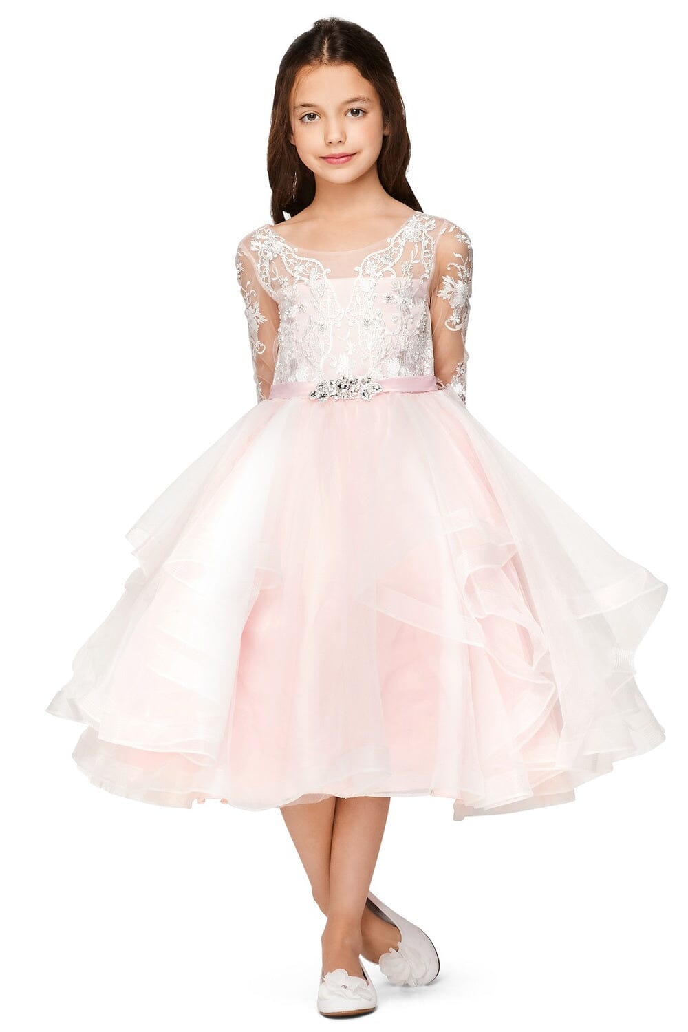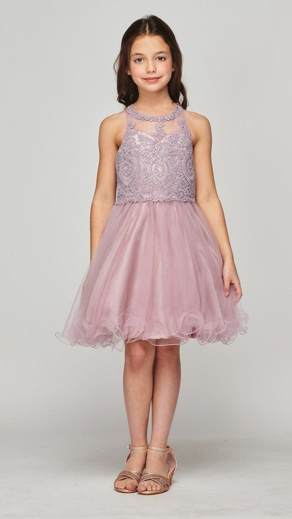 Girls Sleeveless Tulle Dress with Leaf Appliques by Calla D778-Girls Formal Dresses-ABC Fashion