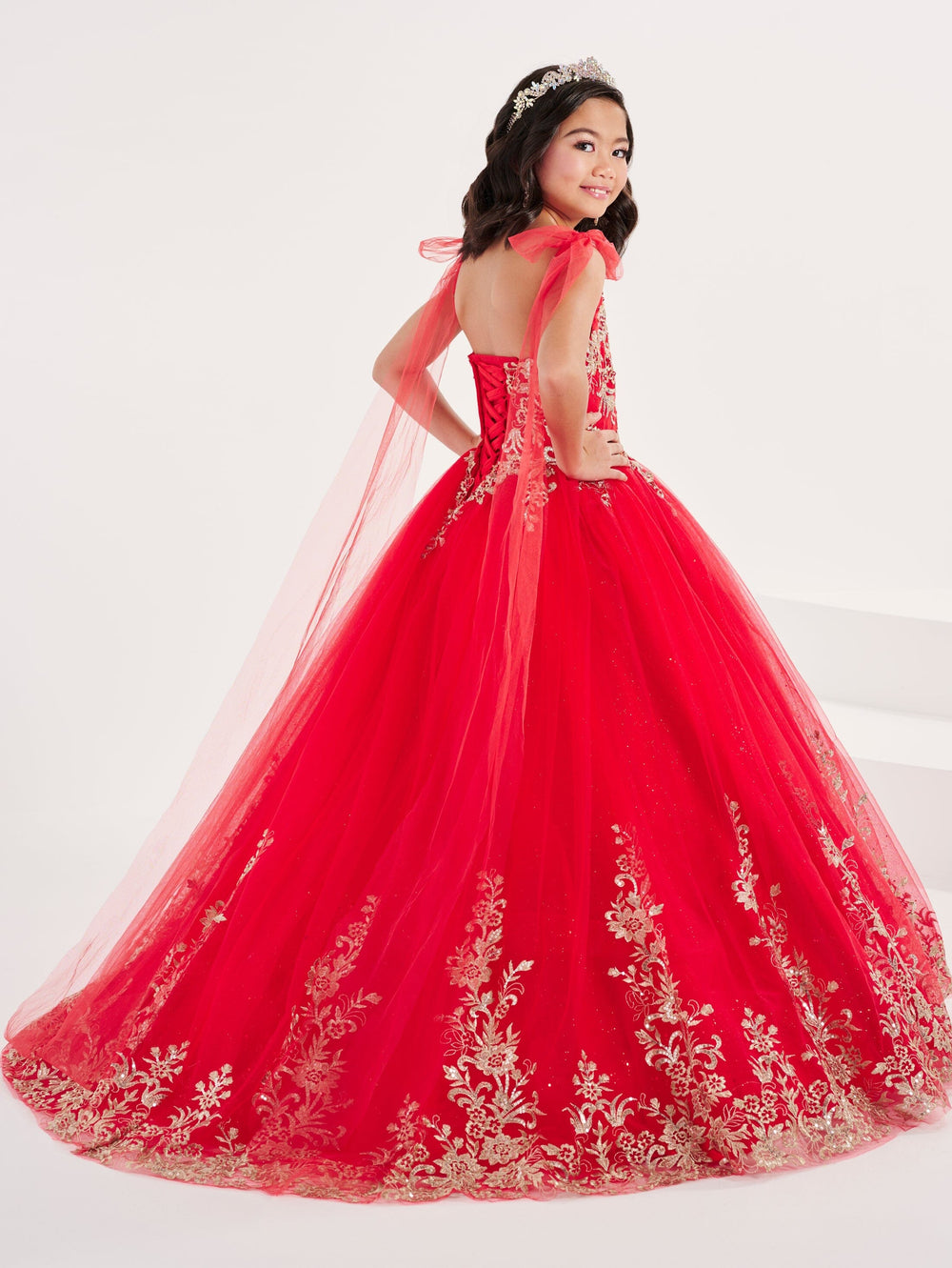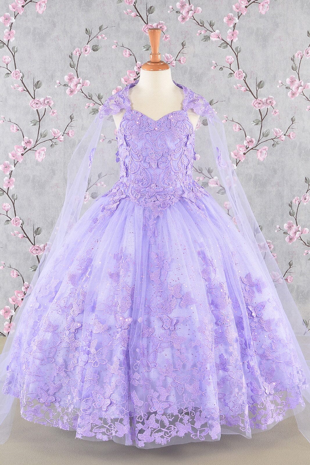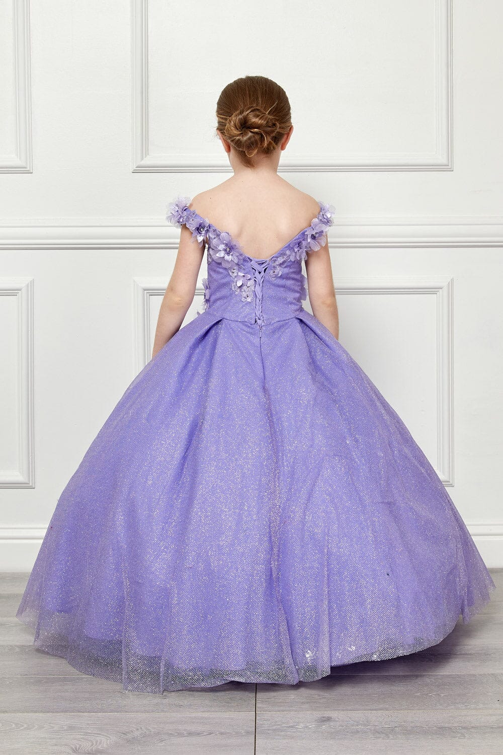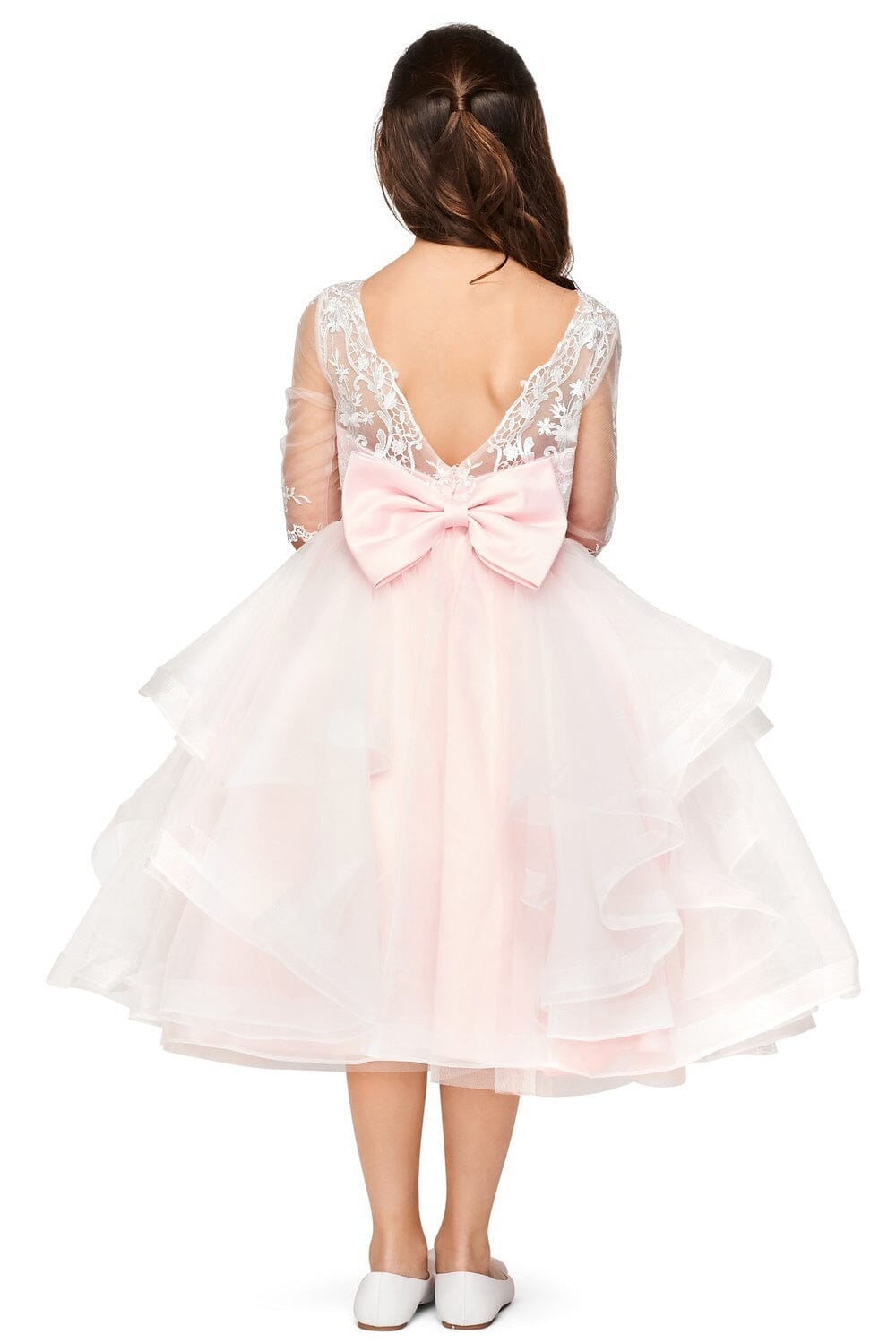 Girls Sleeveless Tulle Dress with Leaf Appliques by Calla D778-Girls Formal Dresses-ABC Fashion