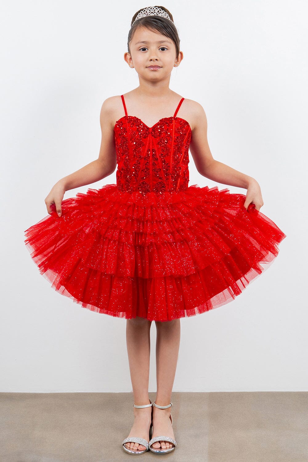 Applique Girls Short Ruffled Dress by Cinderella Couture 5017