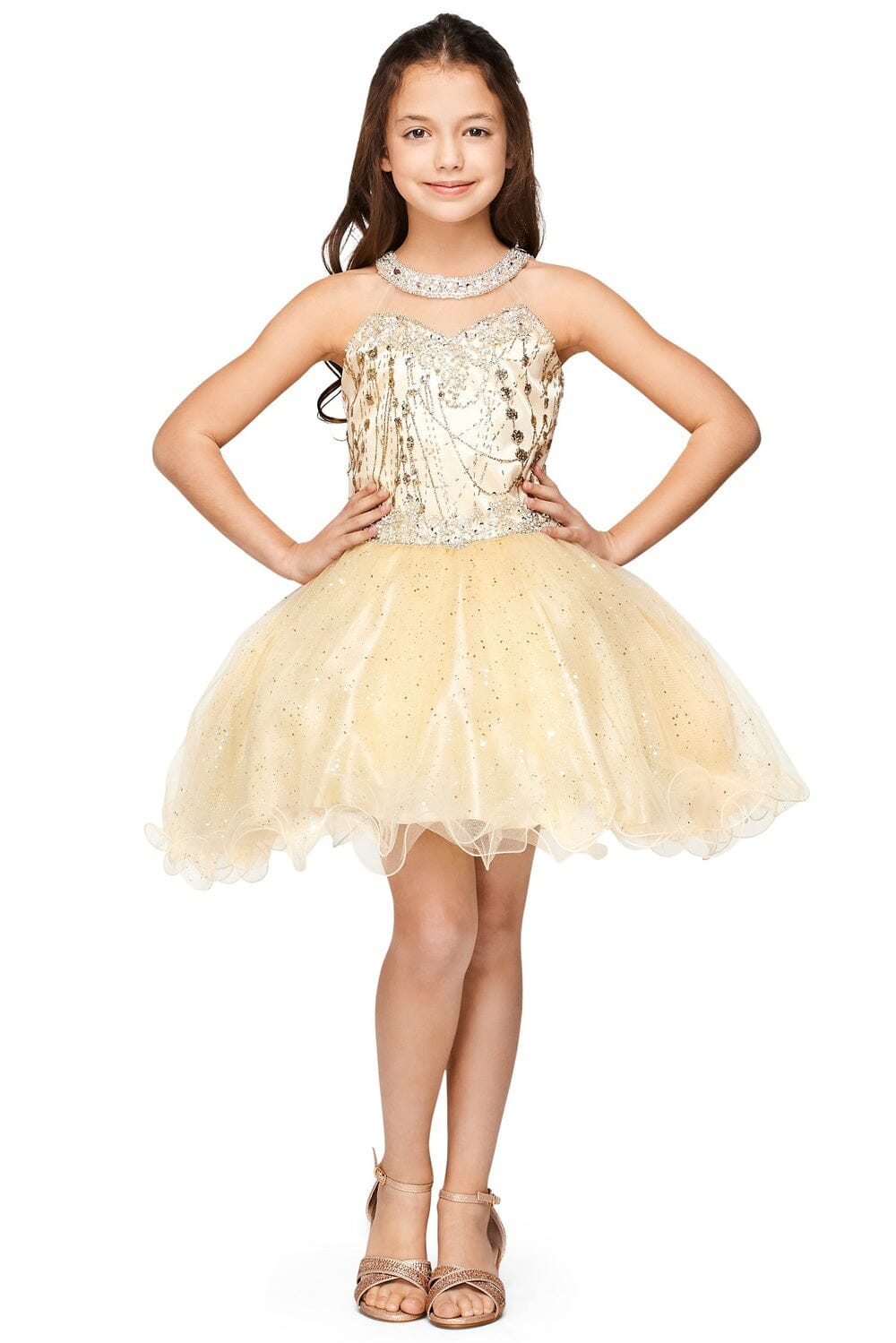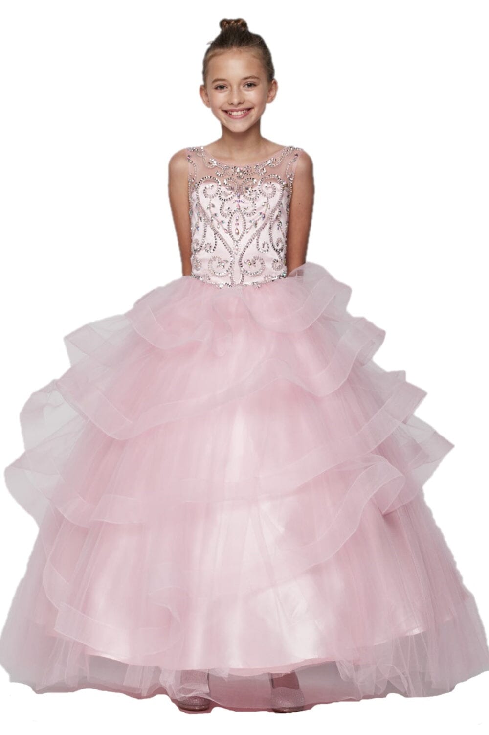 Girls Glitter Cap Sleeve Ball Gown by Calla KY226
