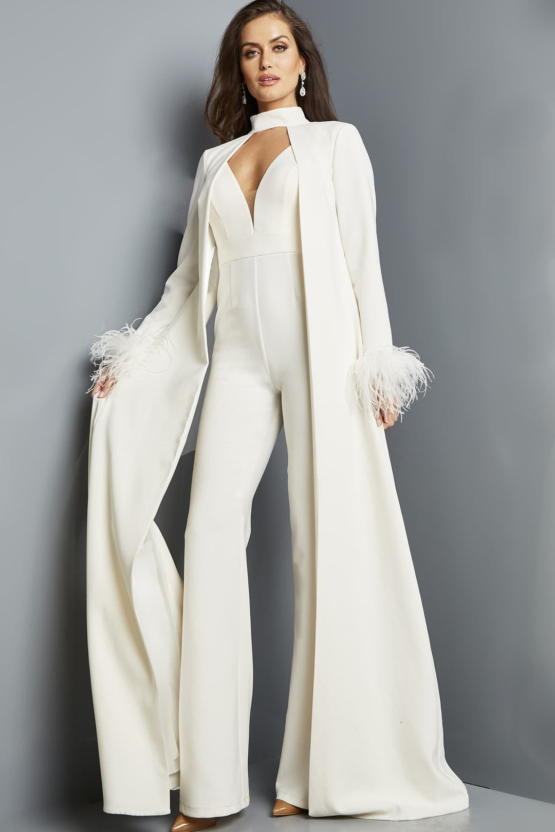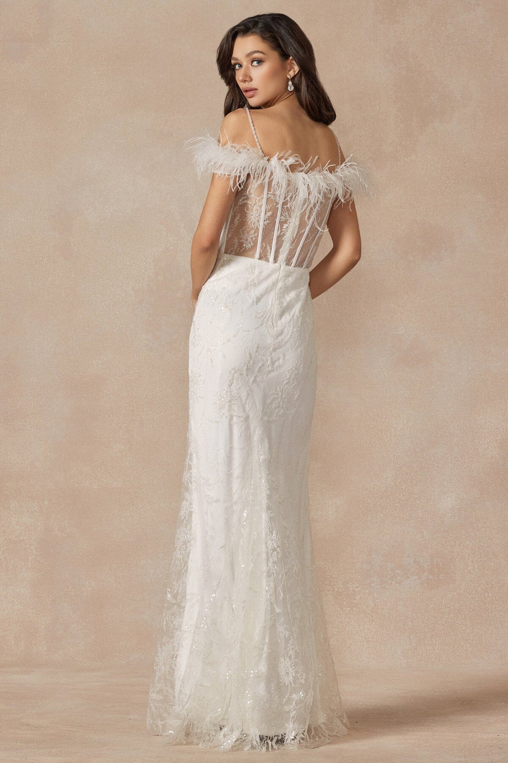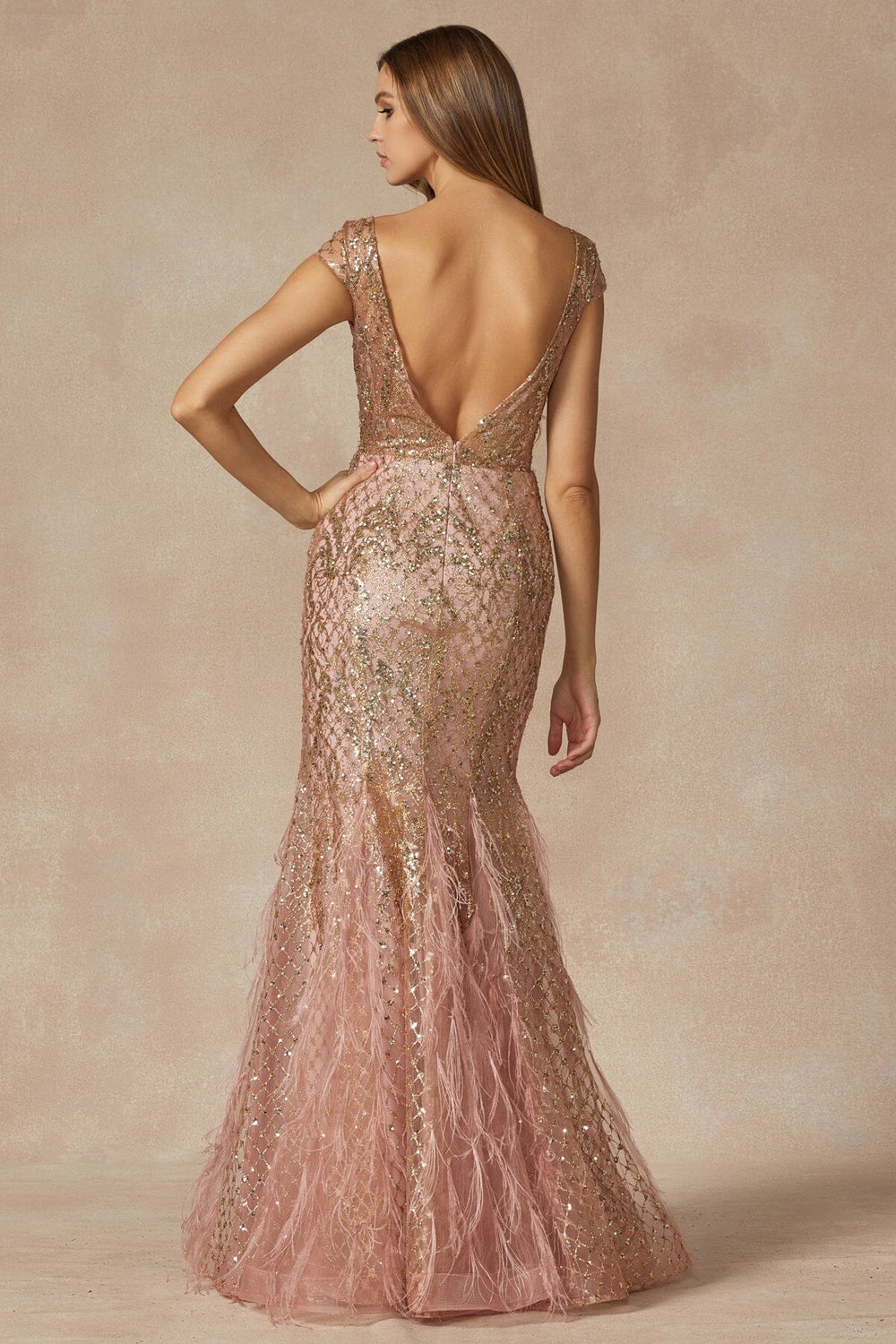 Fitted Feather Slit Gown by Poly USA 9082