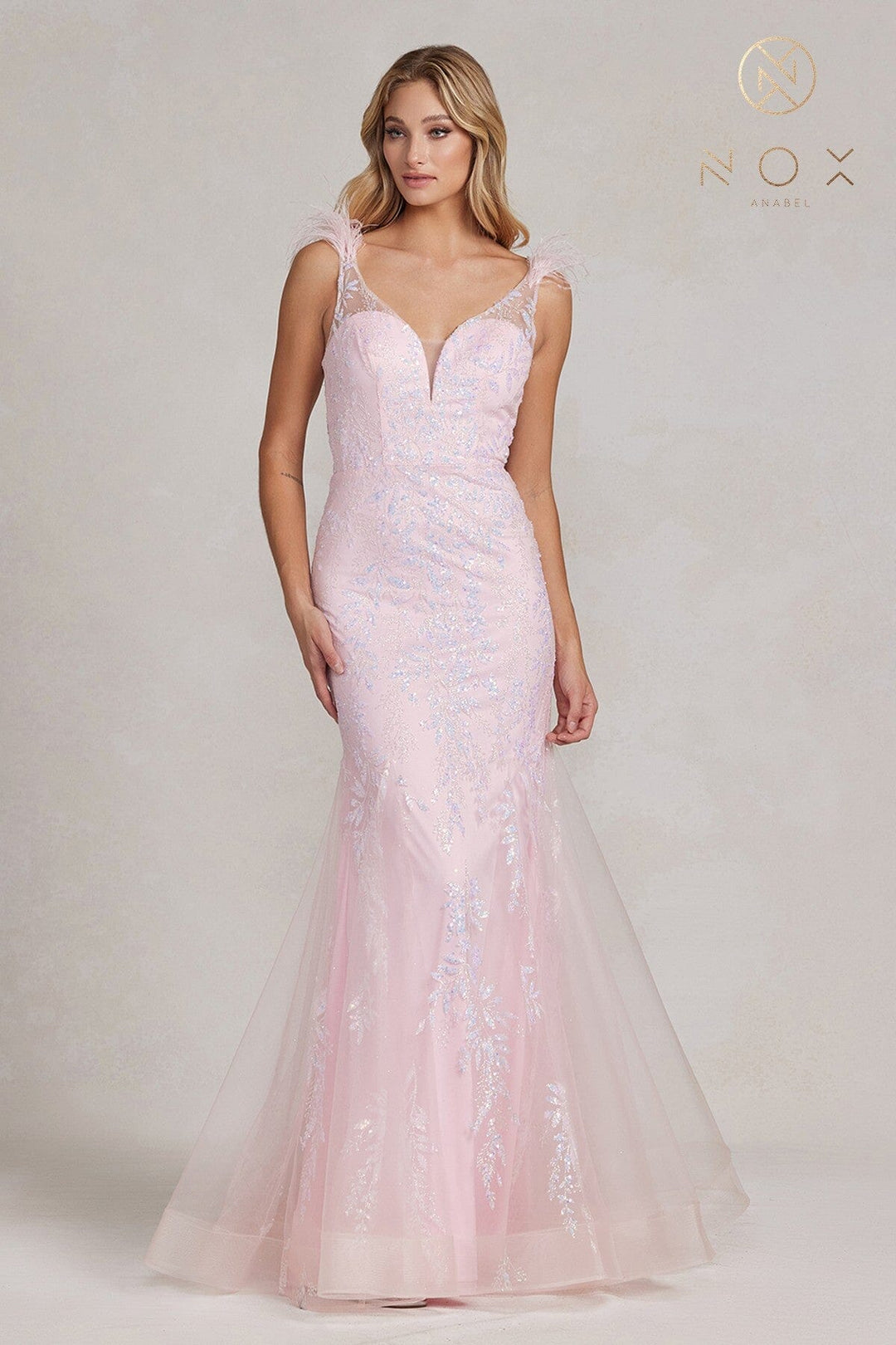 Fitted One Shoulder Feather Gown by Poly USA 9068