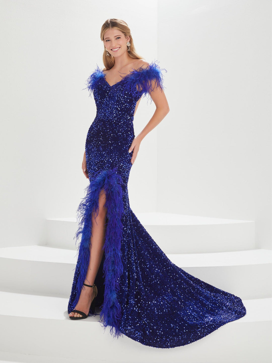 Feather Fitted Long Sleeve Gown by Jessica Angel 567