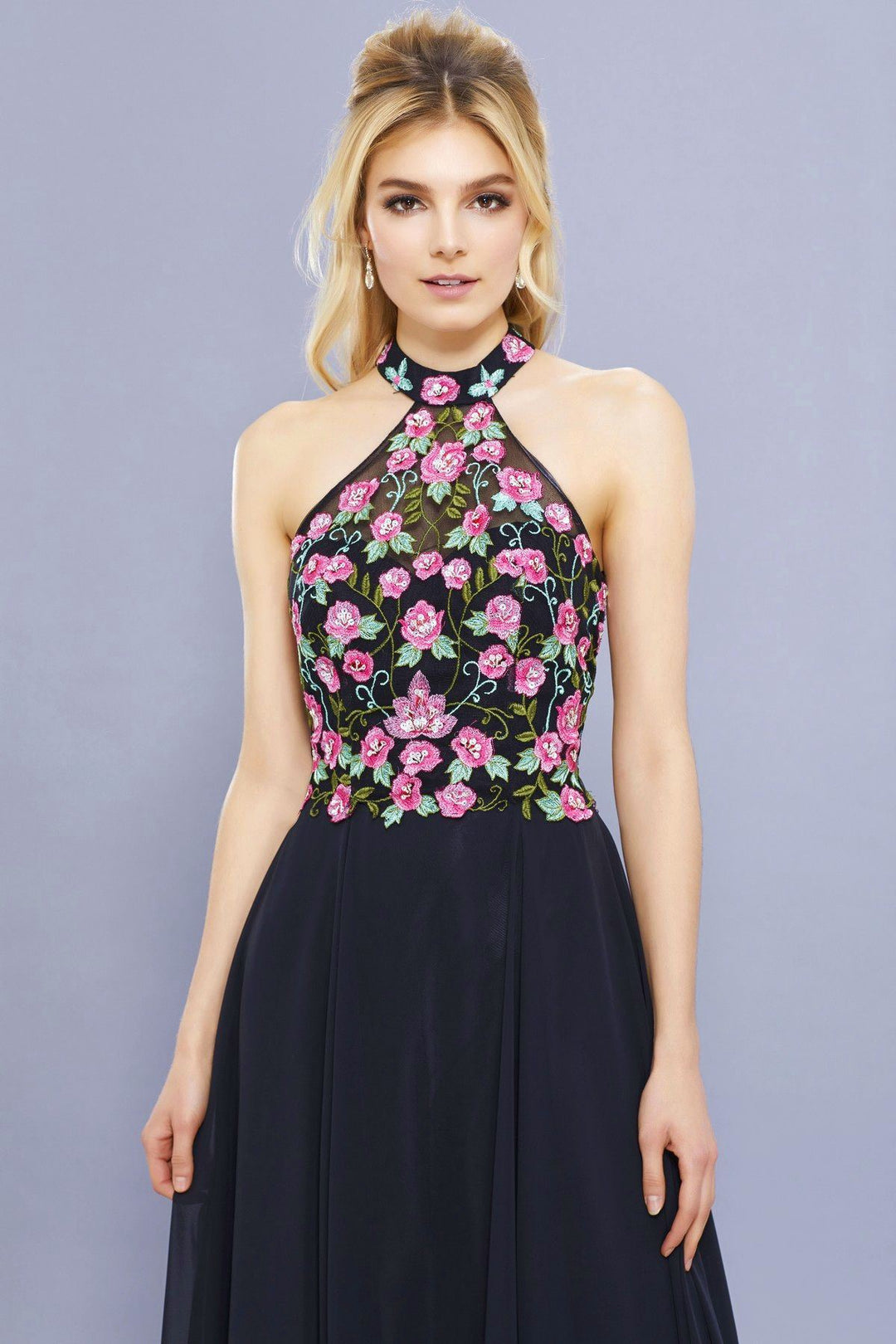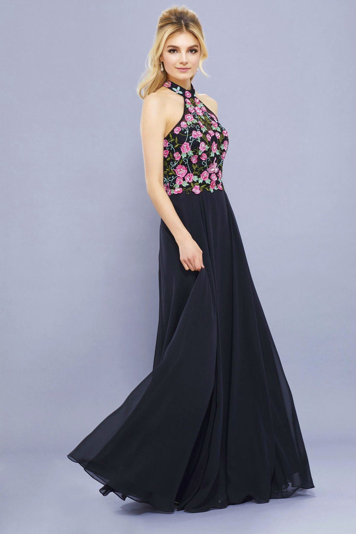 Long Halter Dress with Floral Embroidery by Nox Anabel 8326