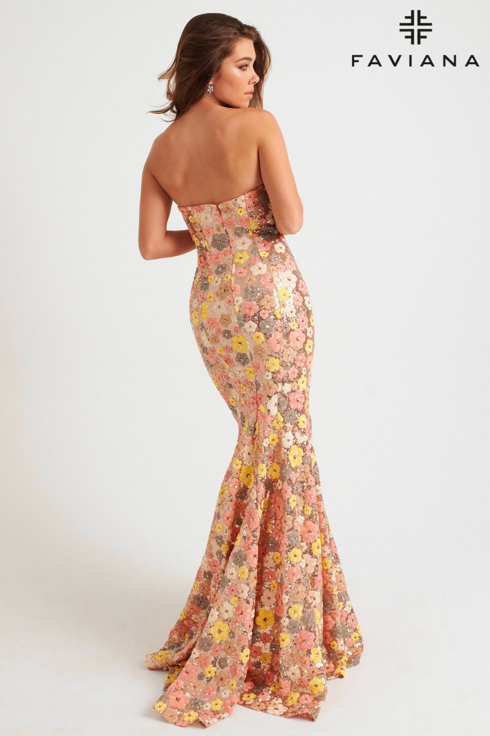 Floral Sequin Strapless Mermaid Dress by Faviana 11036