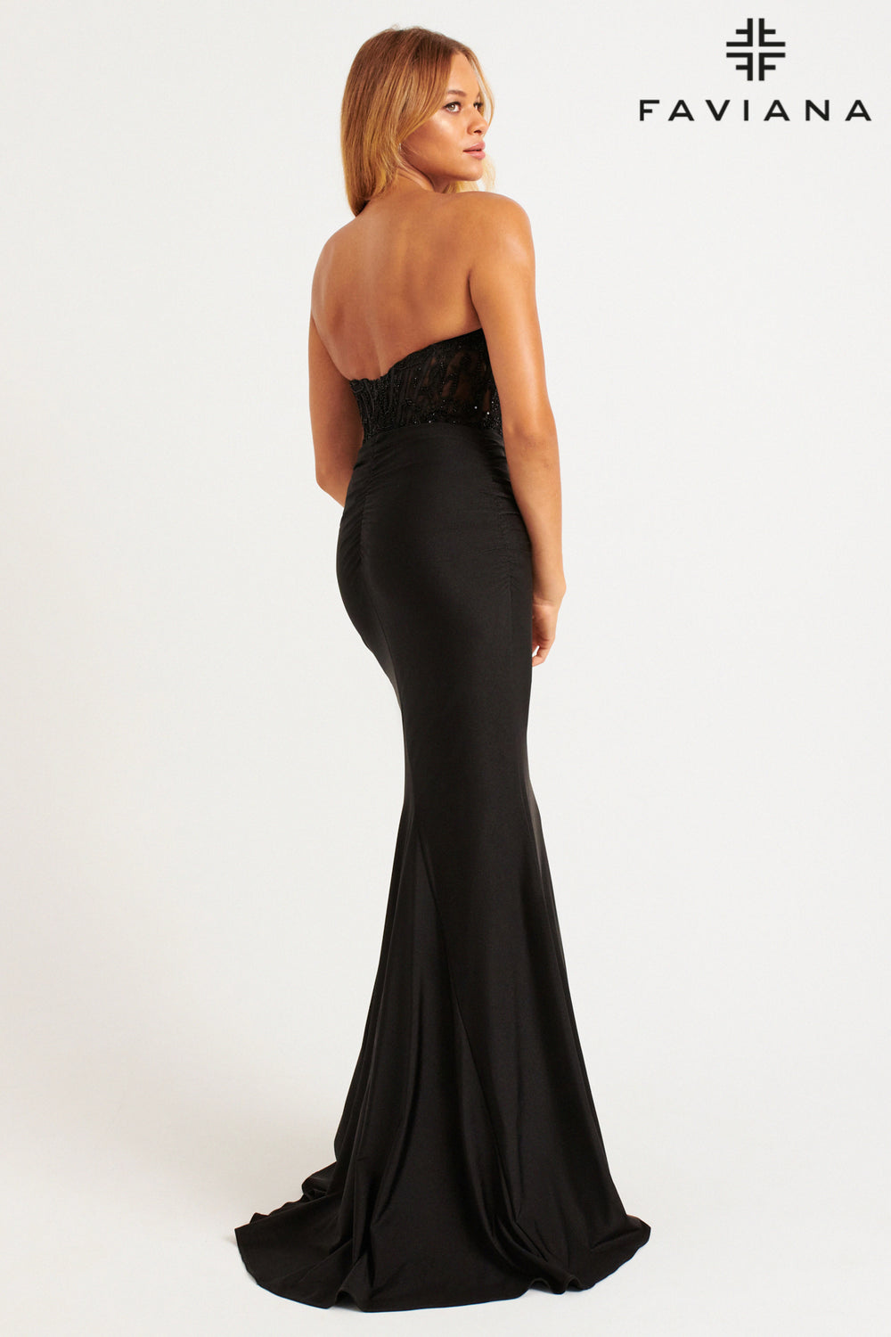 Satin Fitted Strapless Slit Gown by Jovani 37515
