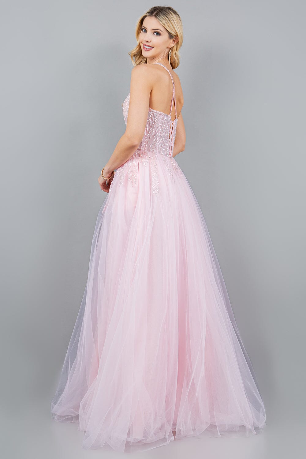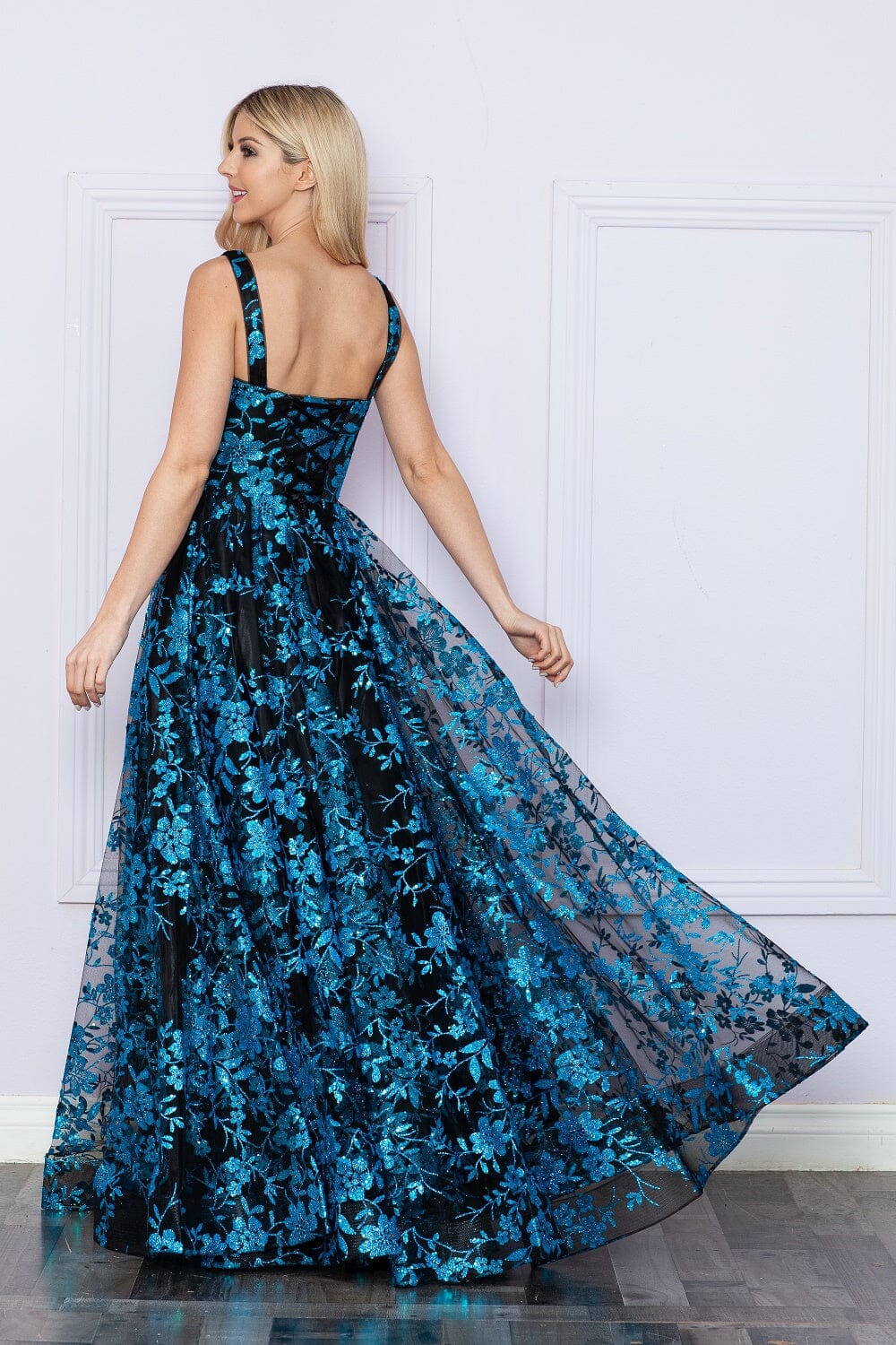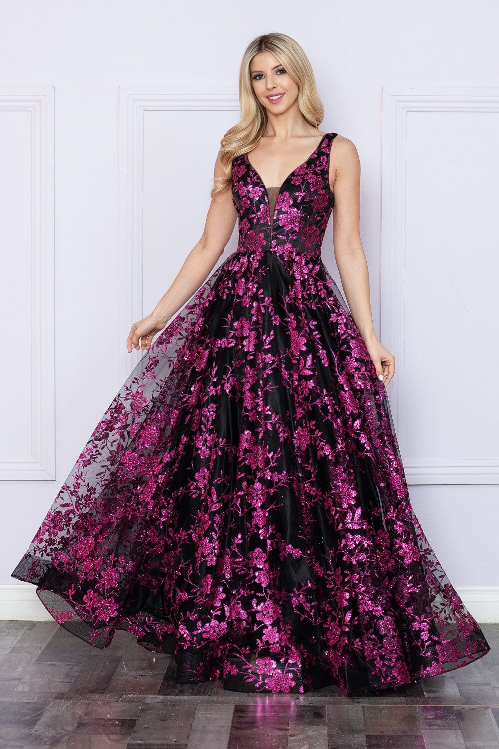 Glitter Print Sleeveless A-line Gown by Poly USA 9298