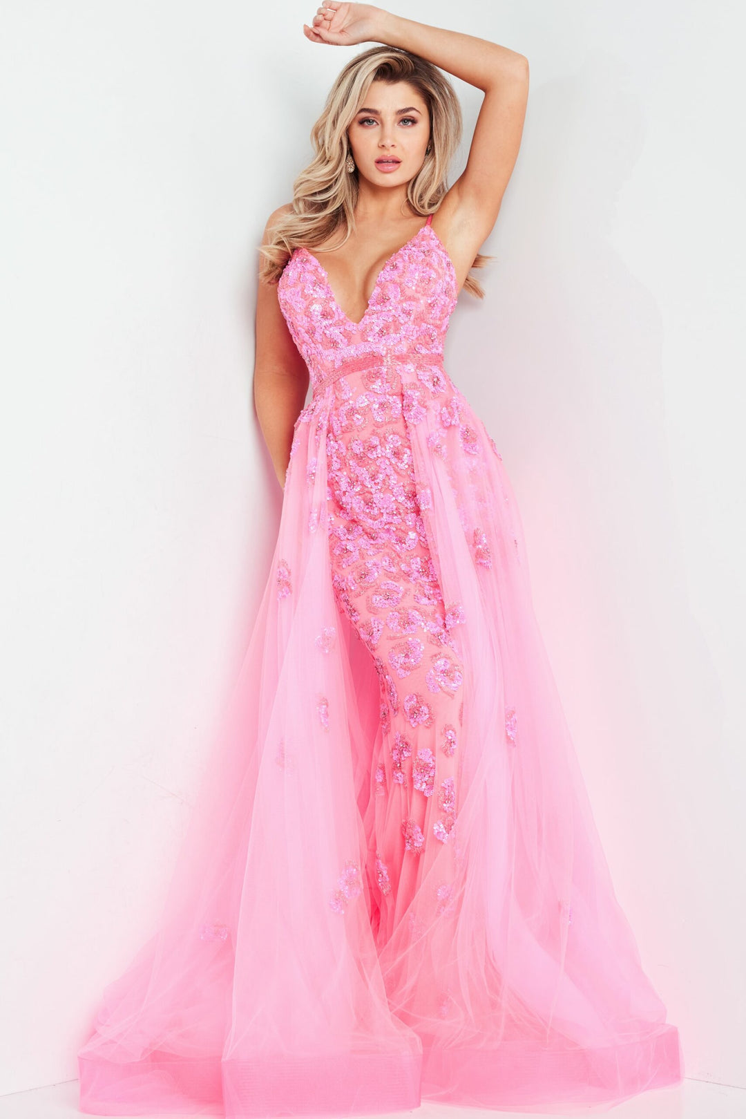 Beaded Sleeveless Overskirt Gown by Jovani 62929