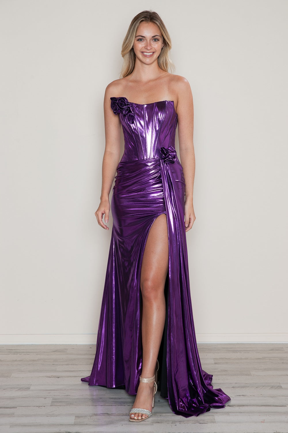 Glitter Satin Strapless Slit Gown by Eureka 9979