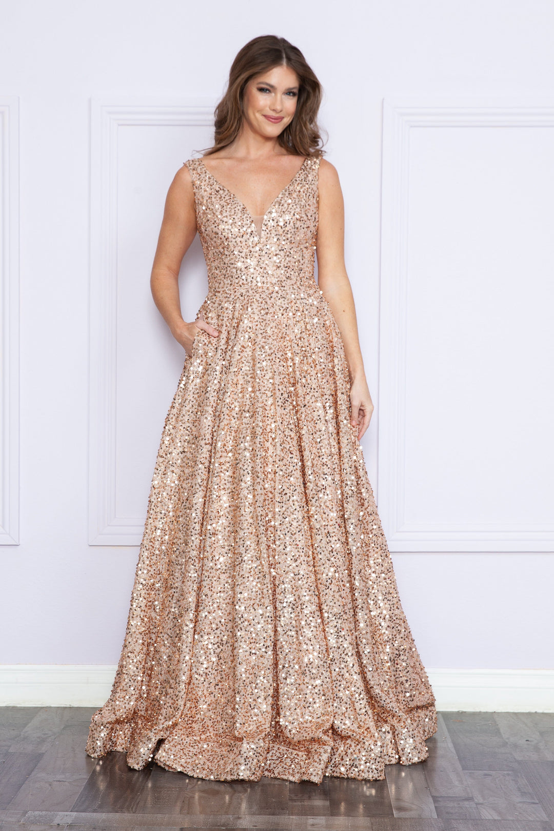 Add some sparkle to your evening by wearing long sequin dresses! From simple sequin details to sequin-covered dresses, these sequined formal gowns are stunning and shine from every angle. Timeless and stunning, wear these sequin dresses for any special occasion!