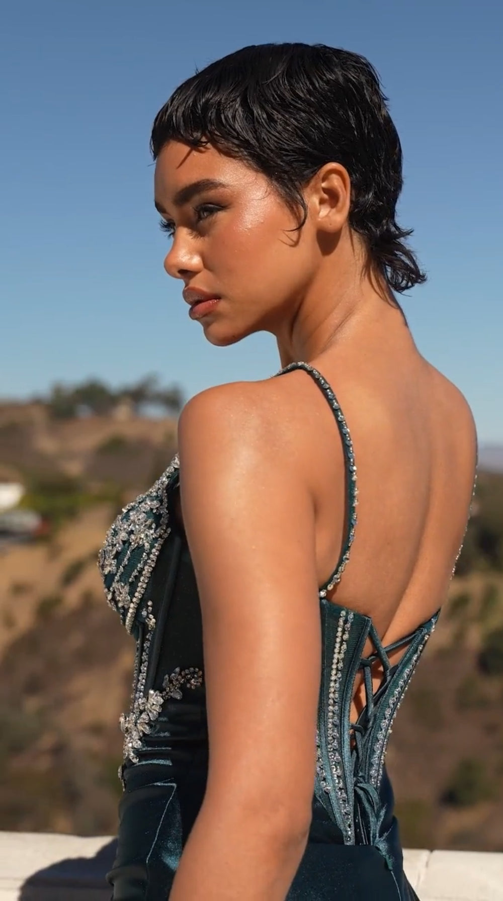 Chiffon Halter A-line Slit Gown by Amoris T713