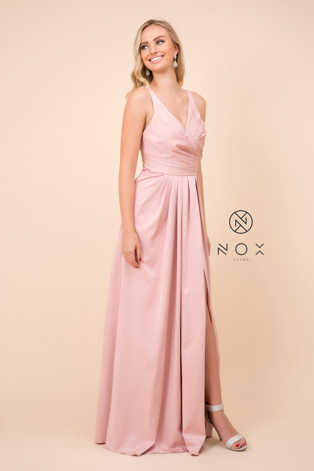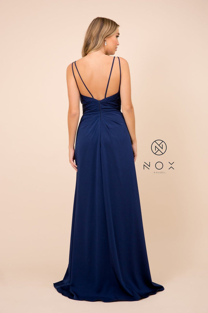 Ruched V-Neck Long Evening Gown by Nox Anabel 8347-Long Formal Dresses-ABC Fashion