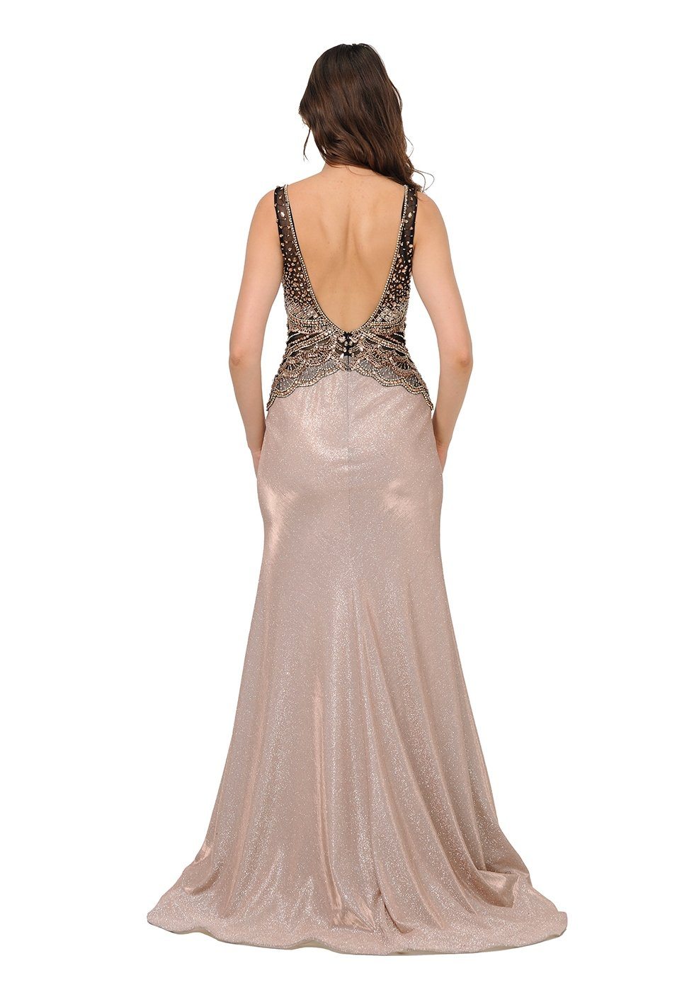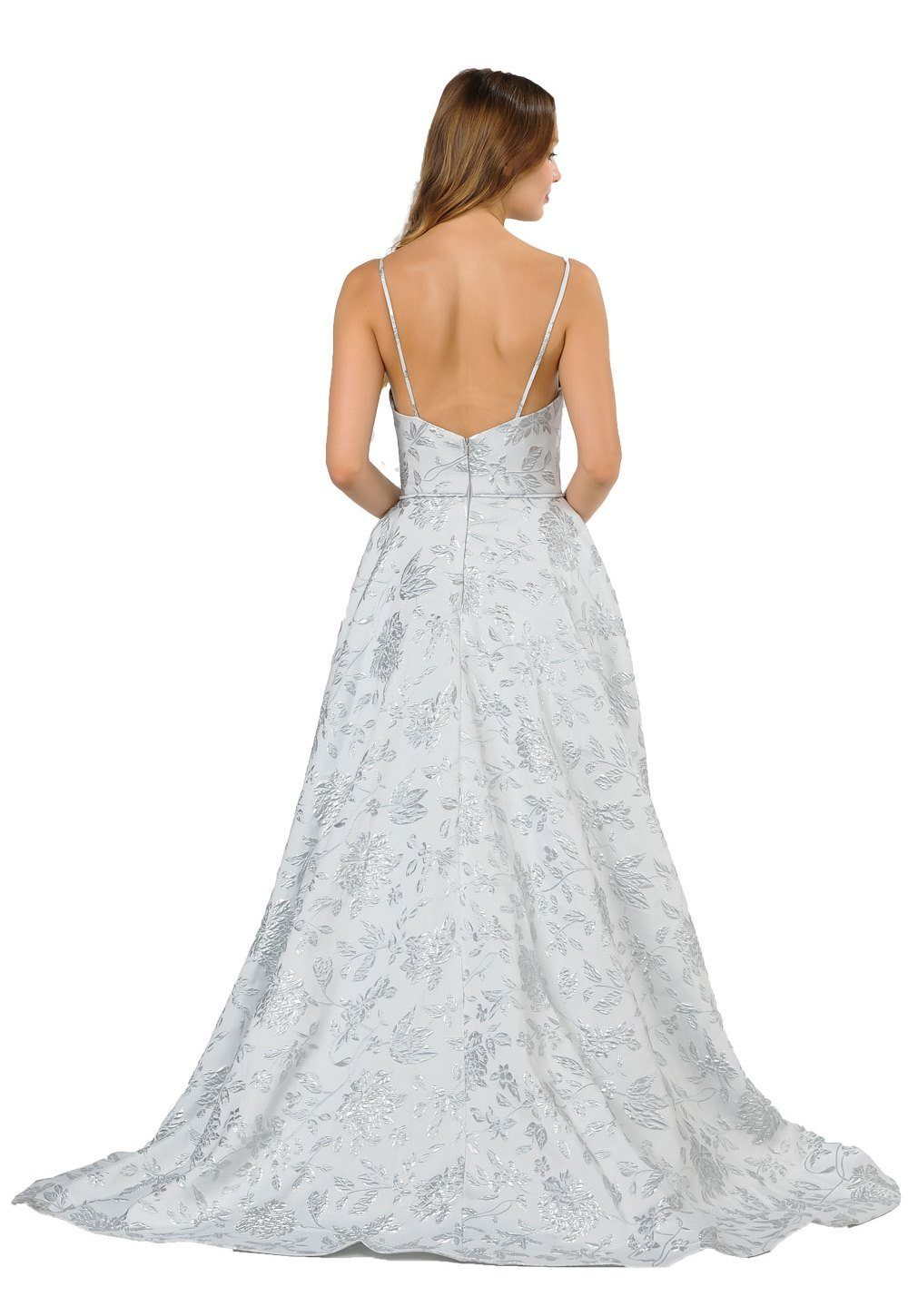 Long Iridescent V-Neck Dress with Open Corset Back by Poly USA 8470