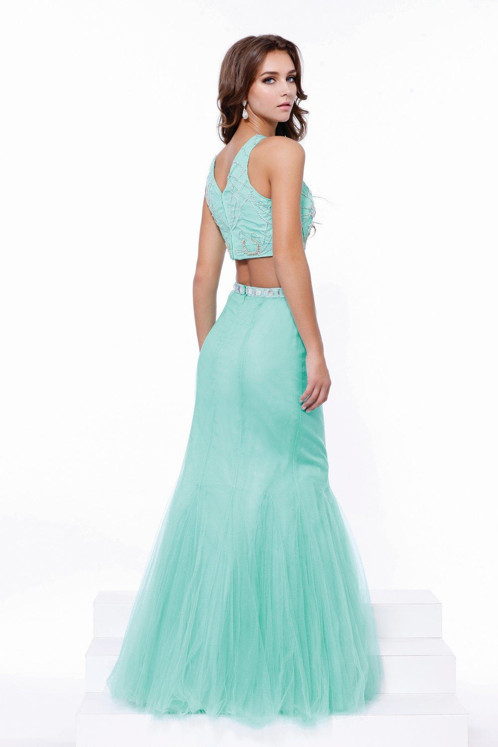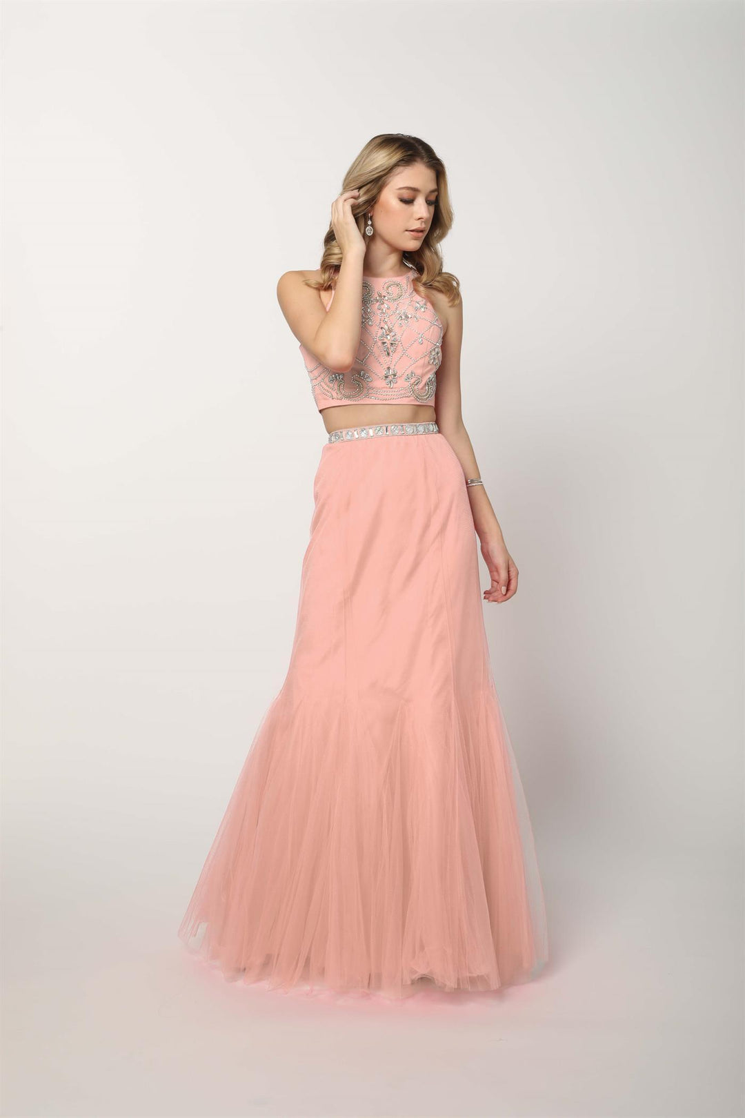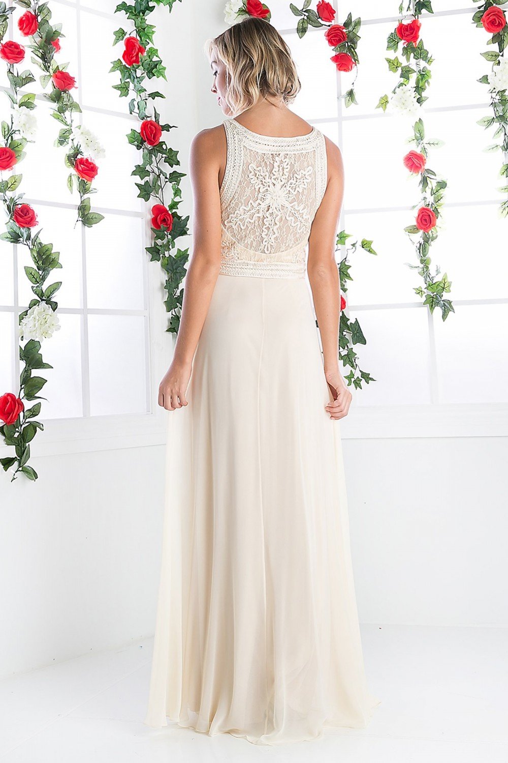 Applique Long Illusion Dress by Cinderella Divine 2635