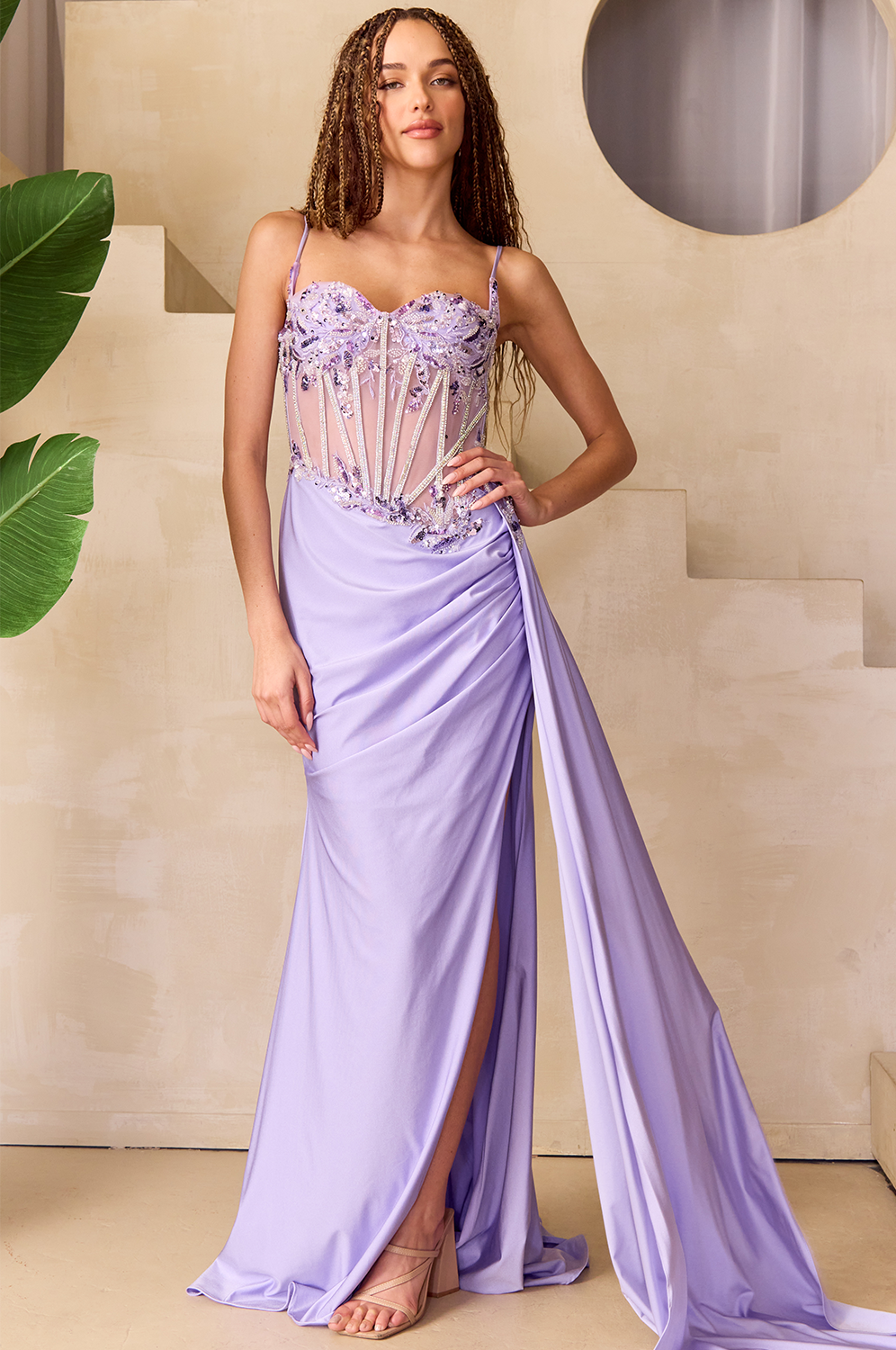 3D Floral Sleeveless A-line Slit Gown by Amarra 88315