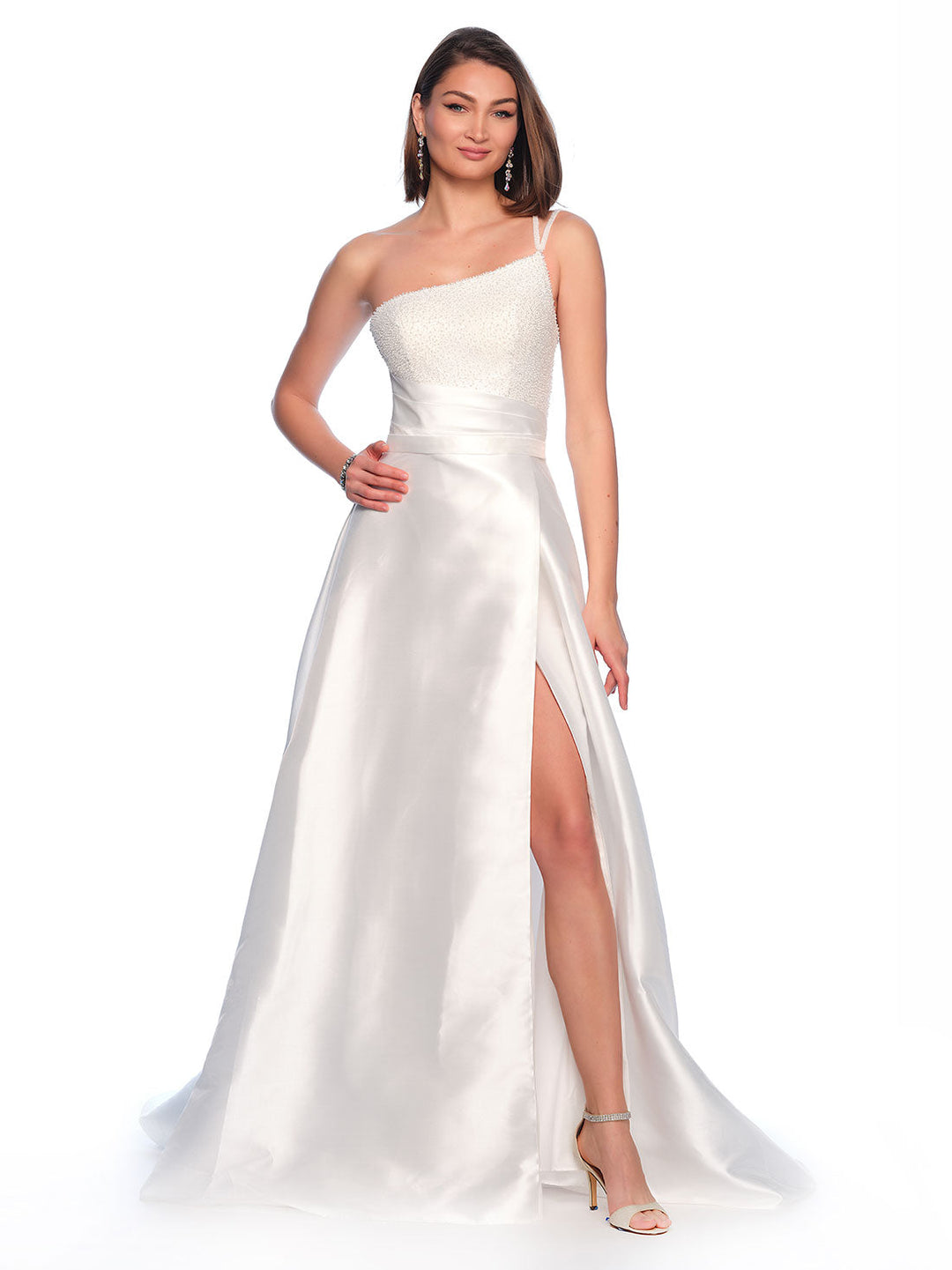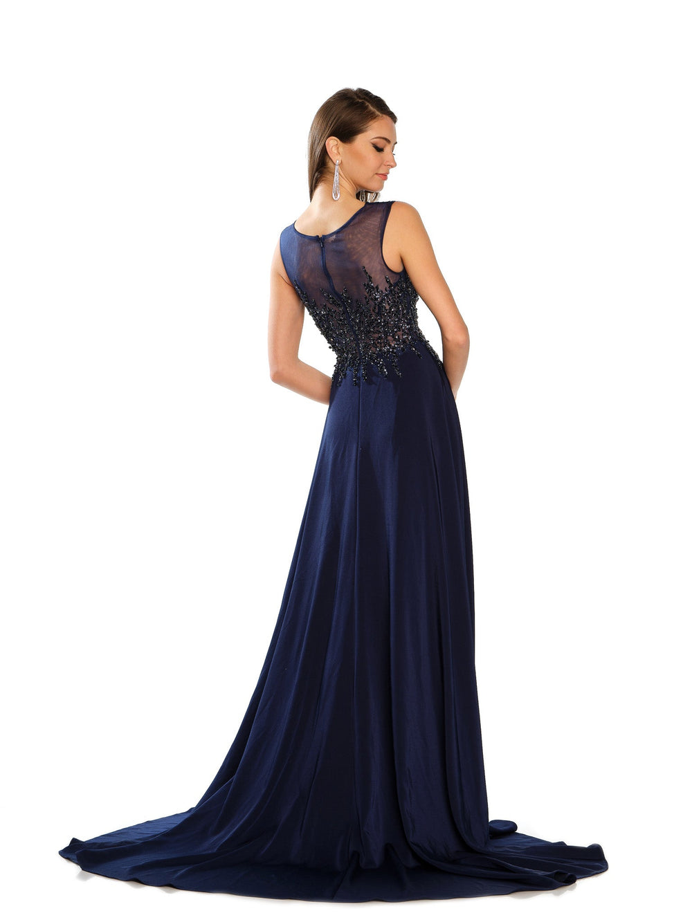 Fitted Beaded Fringe Halter Slit Gown by Amarra 88097