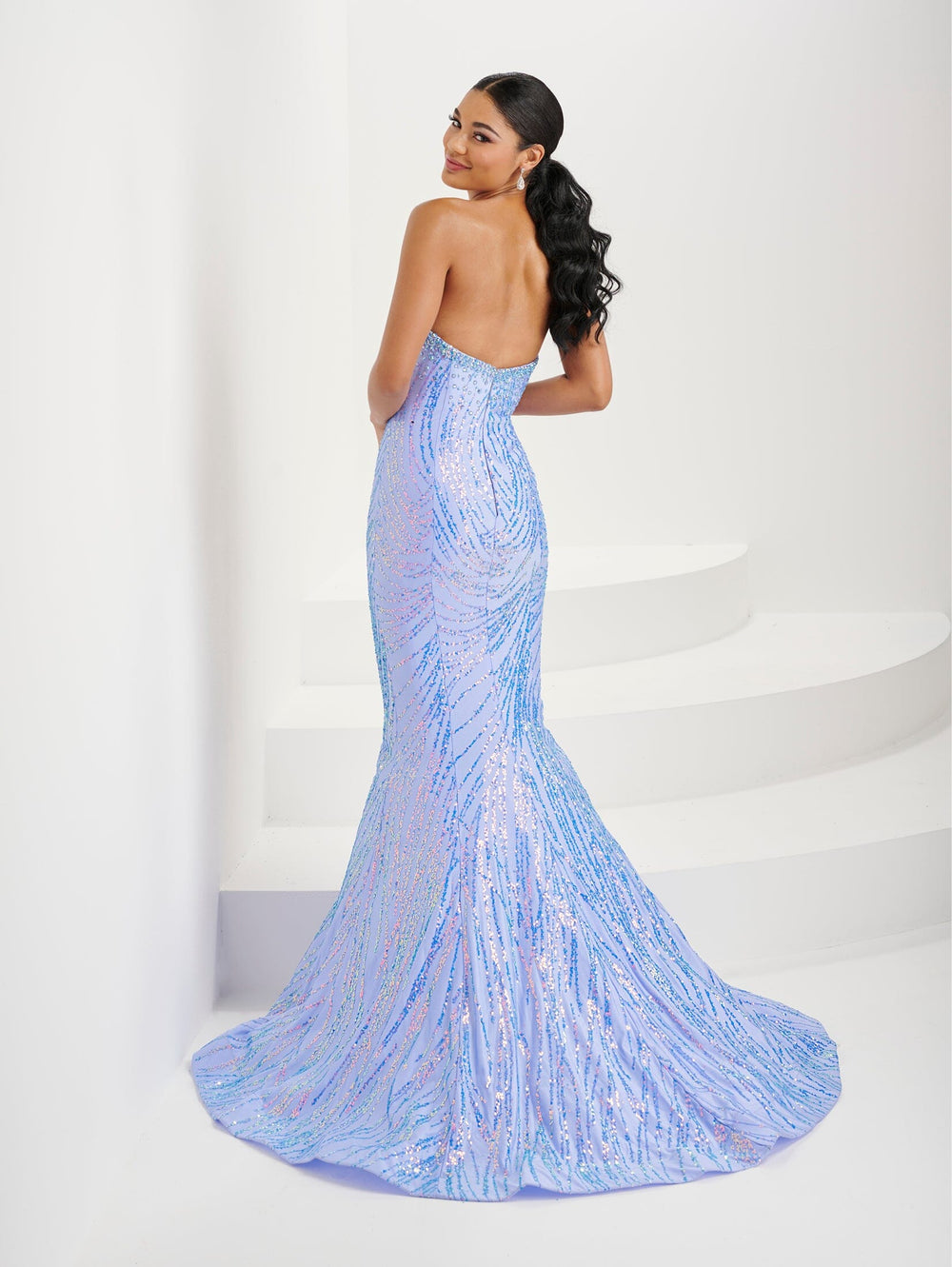 Sequin Print Strapless Puff Sleeve Gown by Tiffany Designs 16071